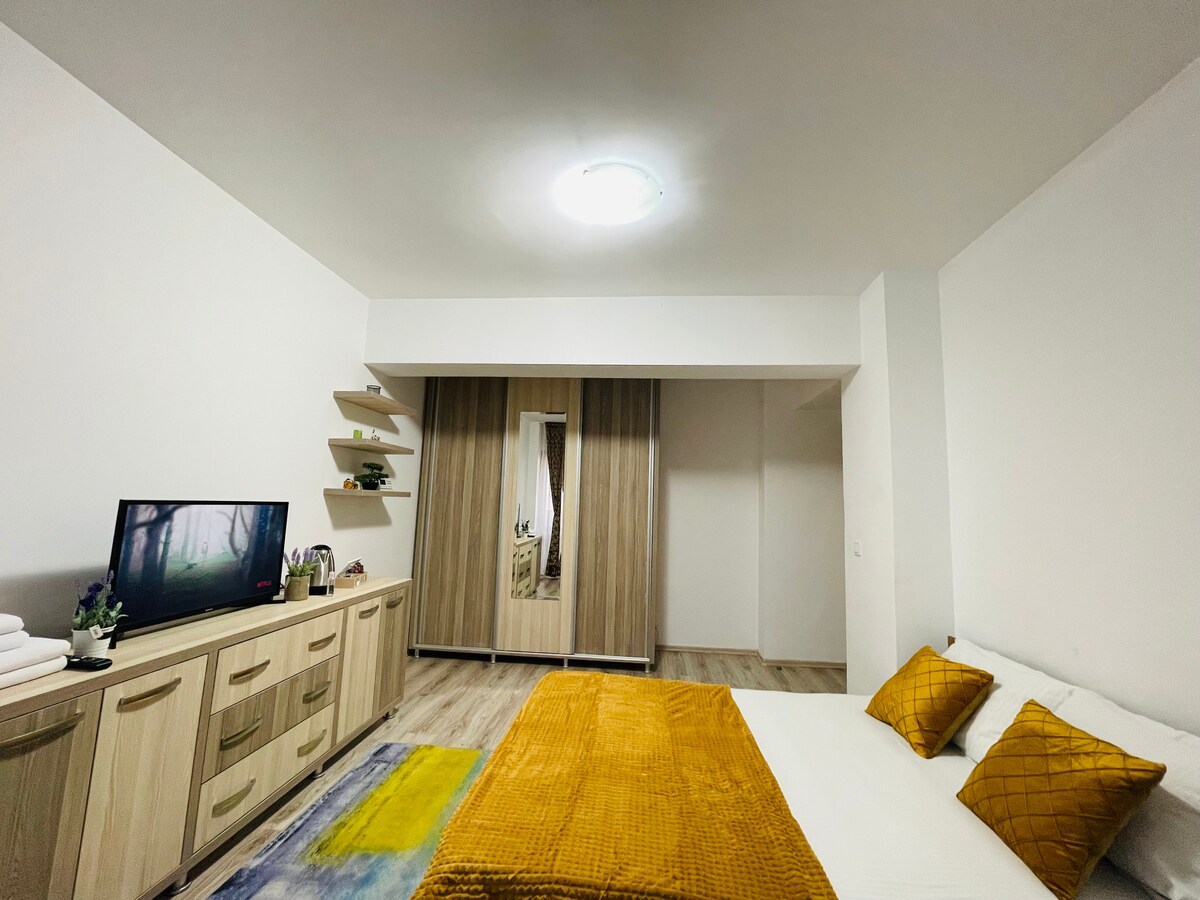 Wir bieten eine Hotelvermietungswohnung mit einem Zimmer in Tatarasi an. Es liegt 1 Minute von den Bus- und Straßenbahnhaltestellen, 1,8 km von Iulius Mall, 1,8 km von der Iulius Mall, 4 km vom Flughafen und 4 km von Piata Unirii entfernt. Ausgestattet ist die Wohnung mit: einer voll ausgestatteten Küche mit allem, was man zum Zubereiten und Servieren der Mahlzeit benötigt;Kühlschrank, Waschmaschine; - Haartrockner; - Highspeed-WLAN; - Fernseher mit HD-Kabelkanälen - Bettwäsche und Handtücher aus Baumwolle;Expressor
