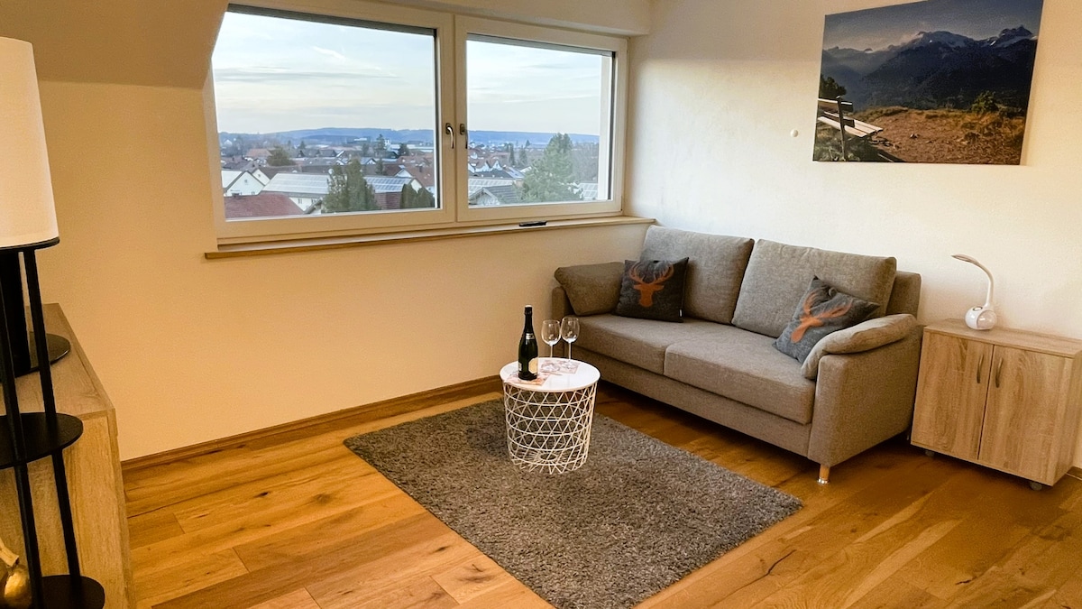 Erlebe die Riviera des Allgäus in diesem modern ausgestattetem Appartement mit Blick auf die Berge. Die Unterkunft liegt sehr ruhig und fußläufig zum Hopfensee. Morgens kann man auf der Terasse mit Bergblick seinen Kaffee genießen. Vom Haus aus kann man mehrere kleine Wanderungen starten (z.B. zur Burgruine oder zum Faulensee), ansonsten ist man natürlich auch schnell in den Bergen.