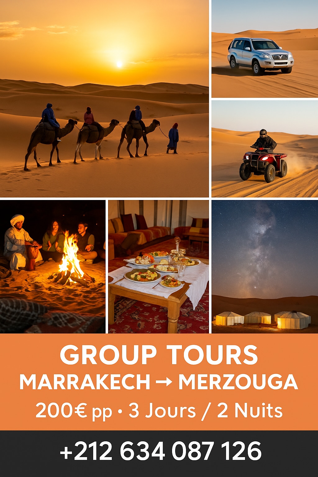 Au cœur du désert d’Agafay, face aux montagnes de l’Atlas, profitez d’un séjour unique dans un camp de 5 tentes confortables, chacune équipée d’un lit double, deux lits simples, salle de bain privative avec douche chaude et toilettes. Le camp dispose de salons sous tente, brasero pour feux de bois, cuisine collective avec wifi, espaces détente avec hamacs, ainsi que des activités comme pétanque et tir à l’arc. Un lieu idéal pour nature, calme et authenticité. Activité disponible sur place.
