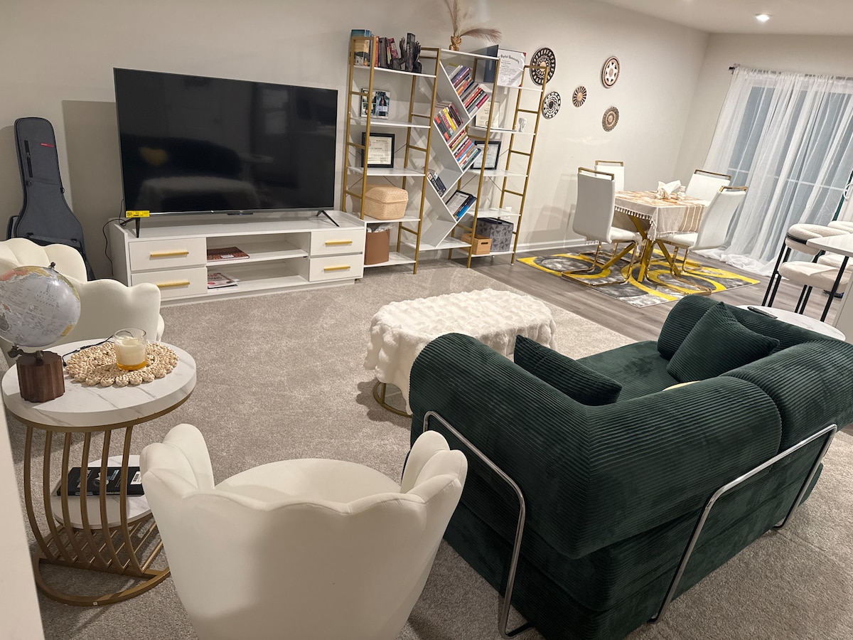 Experience the vibrant pulse of downtown Martinsburg at The Nashville Airbnb. This private apartment features a spacious bedroom with a queen-size bed and TV. The family room boasts a 75" TV and is thoughtfully designed to showcase the artistic and downtown style reminiscent of Nashville, TN. This second story apartment is amazing! Conveniently located within walking distance to the Marc Train, Bars, Restaurants, and Shopping.