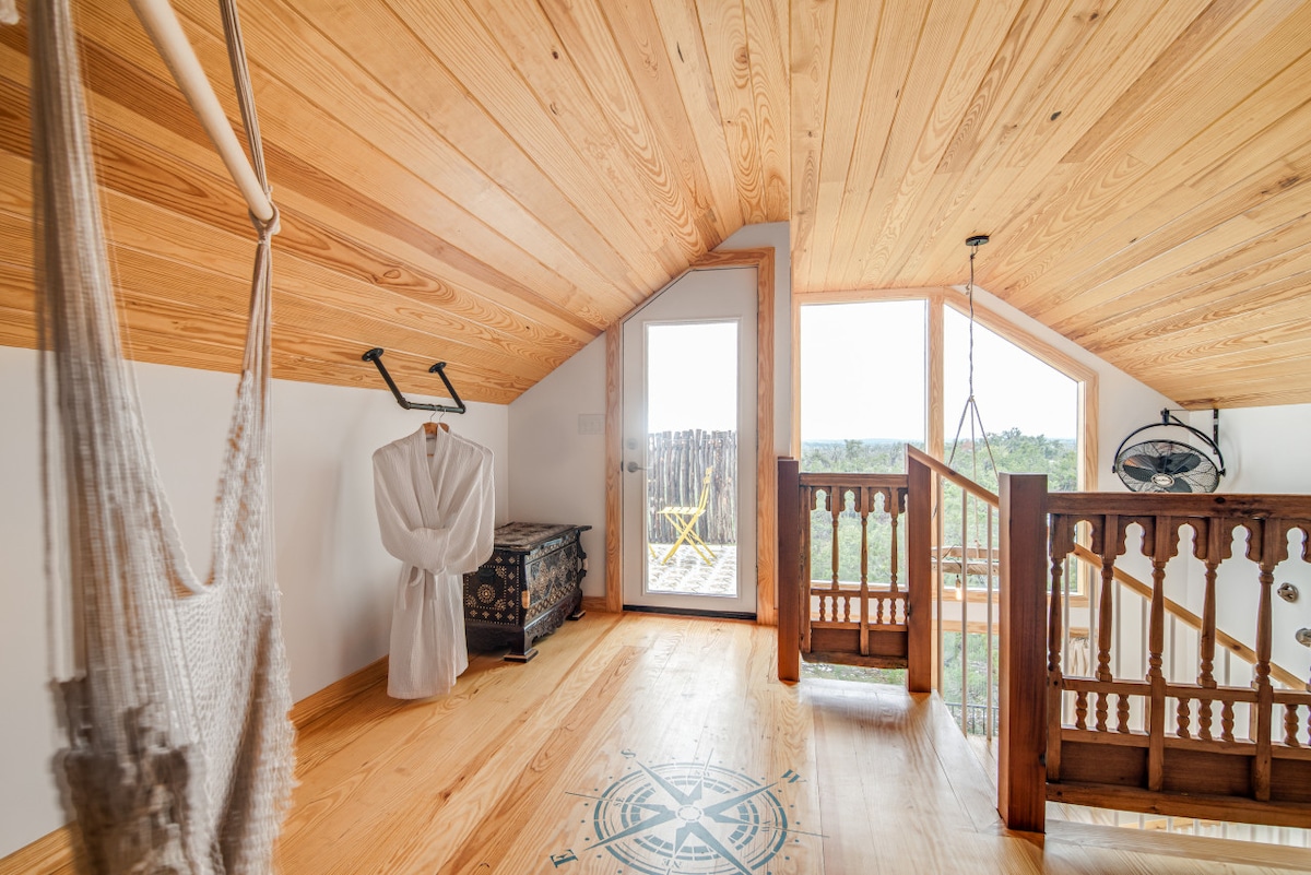 Get away from the city and come wind down on our 5 acre property just a 3 minute drive to the clear cool waters of the Llano River. The Floating Rock Cabin has everything you need; a full kitchen, washer/dryer, a bathroom and shower, an outdoor shower, and Netflix. Enjoy your morning coffee on the deck while watching birds, deer, and other wildlife. Spend your day on the beach at the Llano River fishing, swimming, or hunting for rocks. The starry skies are a must after you grab a bite to eat.