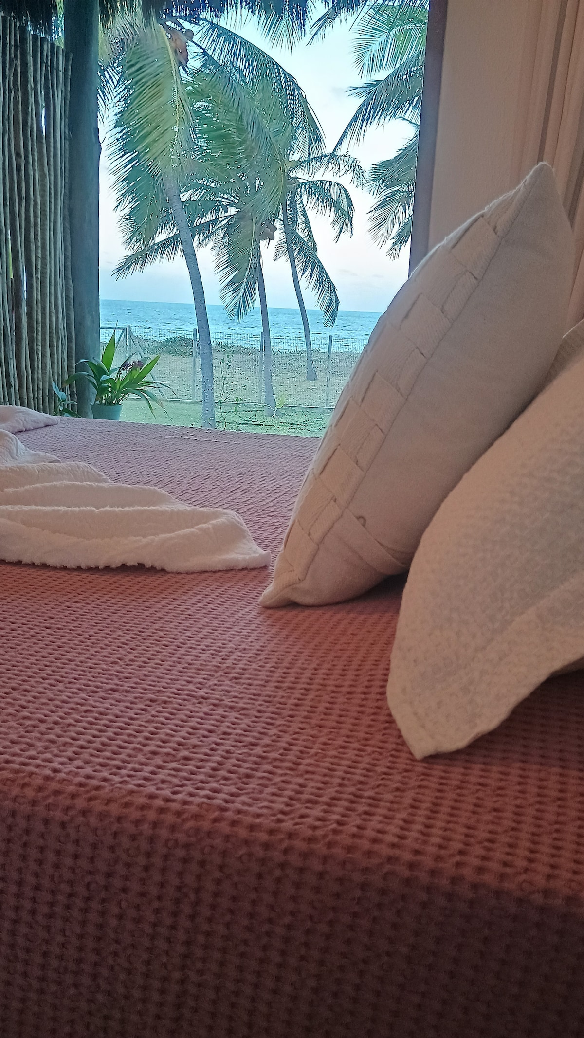 UNTERKUNFT & AROMEN Entspannen Sie sich an diesem ruhigen Ort mit Stil an einem Strand mit bunten Hängematten. Ideal für Paare. Einfacher Zugang zum Strand > 20 Meter. Hütte mit Hängematte, Grill, Terrasse mit Markise. Interne Warmwasser- und externe Kaltwasserdusche, Herd mit Cooktop 02 Flammen, Minibar, Theke für Geschirr, Besteck, Töpfe usw. Der Tisch lässt sich öffnen und schließen. Hohe Matratze, Bettlaken aus 180 Fäden Baumwolle, Decke, Kissen, große Badetücher. Doppelwände, Sonne am Nachmittag, Decke auf dem Dach. KEINE HEIZUNG