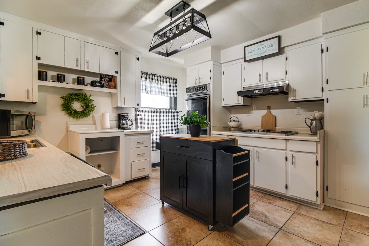 Perfekte Lage! 5 Minuten nach Mittelamerika, 15 Minuten nach Rocklahoma Diese 3BR, 1.5BA Unterkunft ist ideal für Geschäftsreisende und Familien! Das Hauptschlafzimmer verfügt über ein Queensize-Bett und einen TV, während zwei weitere Zimmer große Betten bieten. Jedes Zimmer ist mit Verdunklungsvorhängen ausgestattet. Genieße eine voll ausgestattete Küche mit einem Esstisch für sechs Personen, einem eigenen Arbeitsplatz und einem komplett eingezäunten Garten — haustierfreundlich! Außenkameras vor Ort. Keine PARTYS. Praktisch, komfortabel und in der Nähe von allem, was man braucht.
