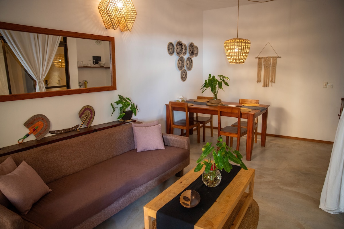Eine Penthouse-Wohnung mit drei Schlafzimmern direkt am Indischen Ozean. Die Sitz- und Essbereiche bieten einen Panoramablick auf die halbinselförmige Strandbucht und alle drei Schlafzimmer bieten auch einen atemberaubenden Blick auf den Ozean. Alle Zimmer sind mit Deckenventilatoren ausgestattet und die Nähe zum Meer sorgt für einen angenehm kühlen Raum. Die Wohnung ist komplett möbliert und bietet Bettwäsche, Handtücher und eine voll ausgestattete Küche. Der Preis beinhaltet WLAN, Strom und Wasser. Parkplatz markiert mit F8. Parke nur hier.