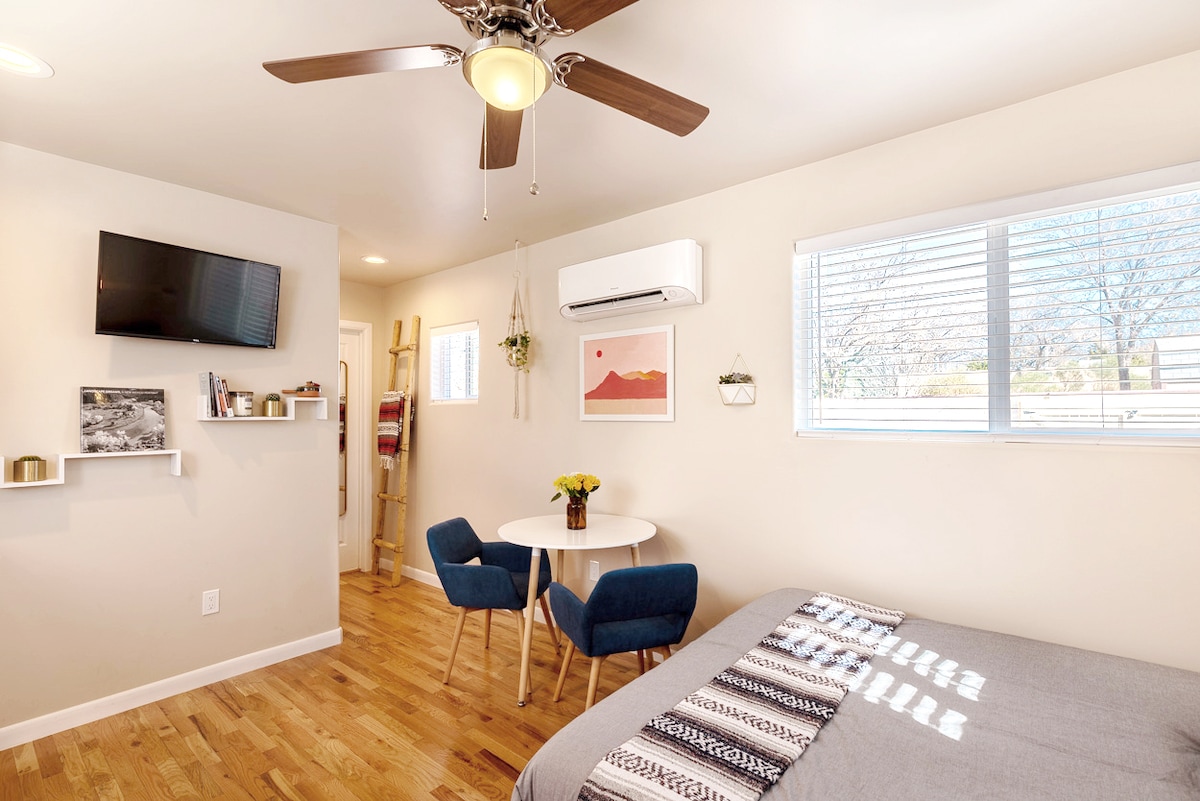 DIE UNTERKUNFT: - Einwandfrei restauriertes Studio - Private Terrasse - Makellose Küchenzeile mit Spüle, Kühlschrank und Mikrowelle - glänzende Hartholzböden - lichtdurchflutet mit 10 Fuß hohen Decken - Designer-Badezimmer - 100 % Baumwolle, Deluxe-Bettwäsche, Kissenauswahl DIE NACHBARSCHAFT: - Lage, Lage, Lage!!! - ABQ's Happening EDO District - Zu Fuß zu tollen Restaurants & der Innenstadt - Lovelace & Presbyterian Krankenhäuser sind in der Nähe - In der Nähe des Bahnhofs Rail Runner - Nur wenige Gehminuten vom Kongresszentrum entfernt - Eine Meile zur UNM