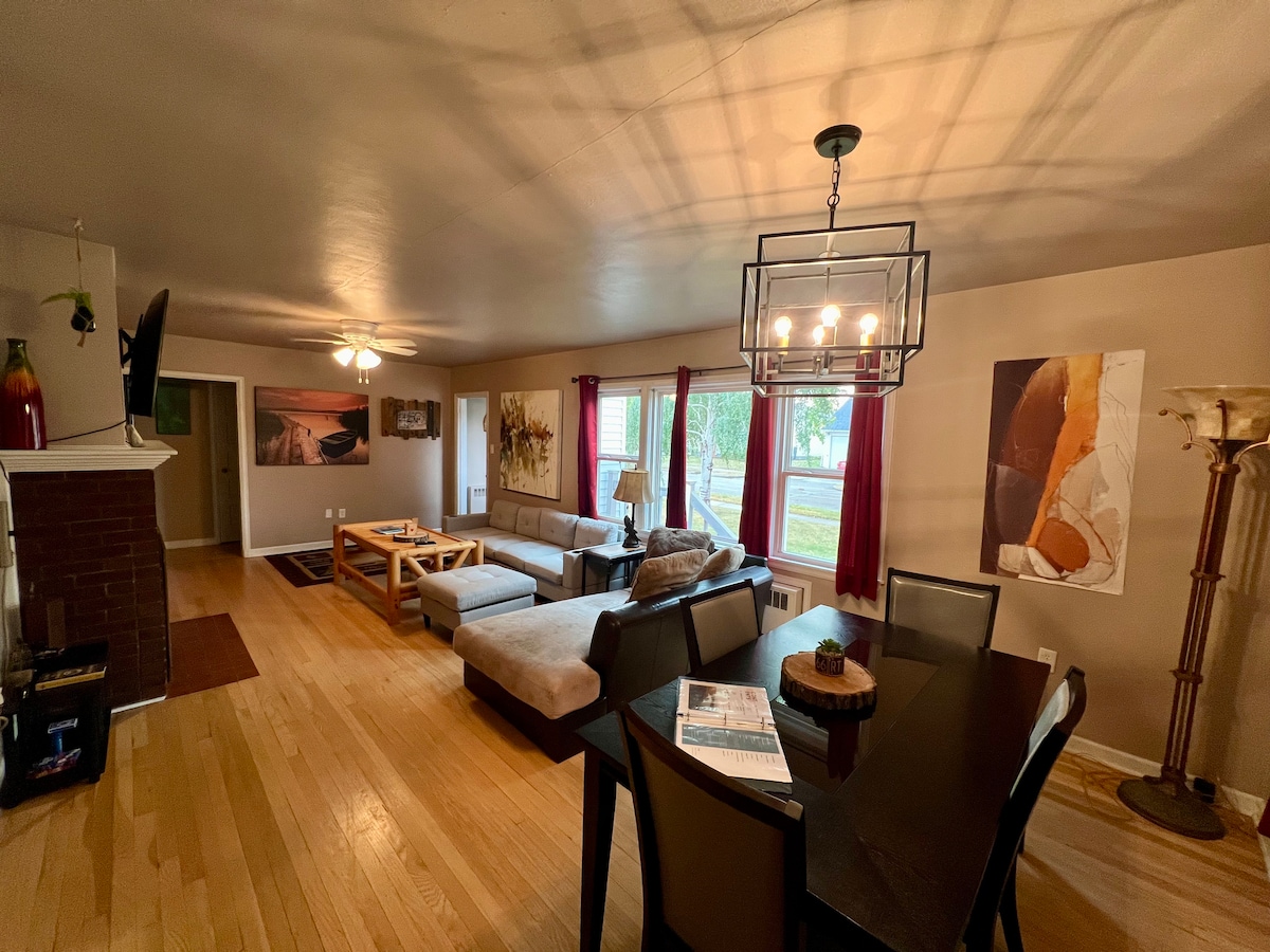 Das Bear Den bietet eine erholsame und rustikale Umgebung. Du bist 5 Minuten vom Lake Sakakawea, dem Missouri River und mehreren Bootsrampen entfernt. Das Viertel ist ruhig und freundlich. In der Nähe gibt es viele Parks und Restaurants. Es gibt auch eine große Einfahrt, die Platz für ein Boot und ein paar Fahrzeuge bietet. Der Hinterhof verfügt über einen Grill, eine Feuerstelle, eine Pergola-Schattenstruktur und Gartenmöbel.
