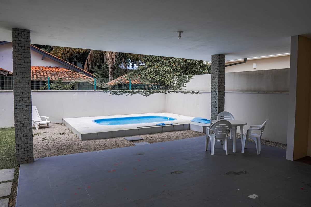 “ Casa da Piscina ” Fica dentro de um condomínio em Camboriú, bem perto de Balneário Camboriú , a 6 min (2,3 km) do Balneário Camboriú Shopping e a 9 min (4,3 km) da Praia Central de Balneário Camboriú. A casa possuí Um Quarto grande com duas camas de casal, um ar condicionado, uma TV , Internet . Um banheiro, Chuveiro, Cozinha Completa, Churrasqueira. A área possuí duas piscinas privativas, uma ducha. Garagem 1 vaga . OBS: Ambiente Familiar, Proibido Festas e Som Alto.