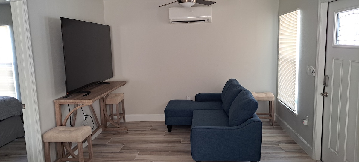 Studio (kein volles Haus) mit eigenem Eingang. Begehbarer Kleiderschrank, Dusche, Mikrowelle, Minikühlschrank, Keurig-Kaffeemaschine, Wasser, Tees zur Auswahl. GROSSER 60-Zoll Smart-TV mit Netflix, Primetime, Roko. Komfortables Memory-Schaum-Queen-Bett für eine erholsame Nachtruhe in einer ruhigen Unterkunft. Das ist ein Studio mit einem Schlafzimmer. Zentral gelegen. 2 Minuten zum historischen Viertel, Einkaufsmöglichkeiten, F.I.T., 12 Minuten zum Strand. Ich liebe es und du wirst es auch lieben! Eine Stunde von den wichtigsten Sehenswürdigkeiten entfernt.