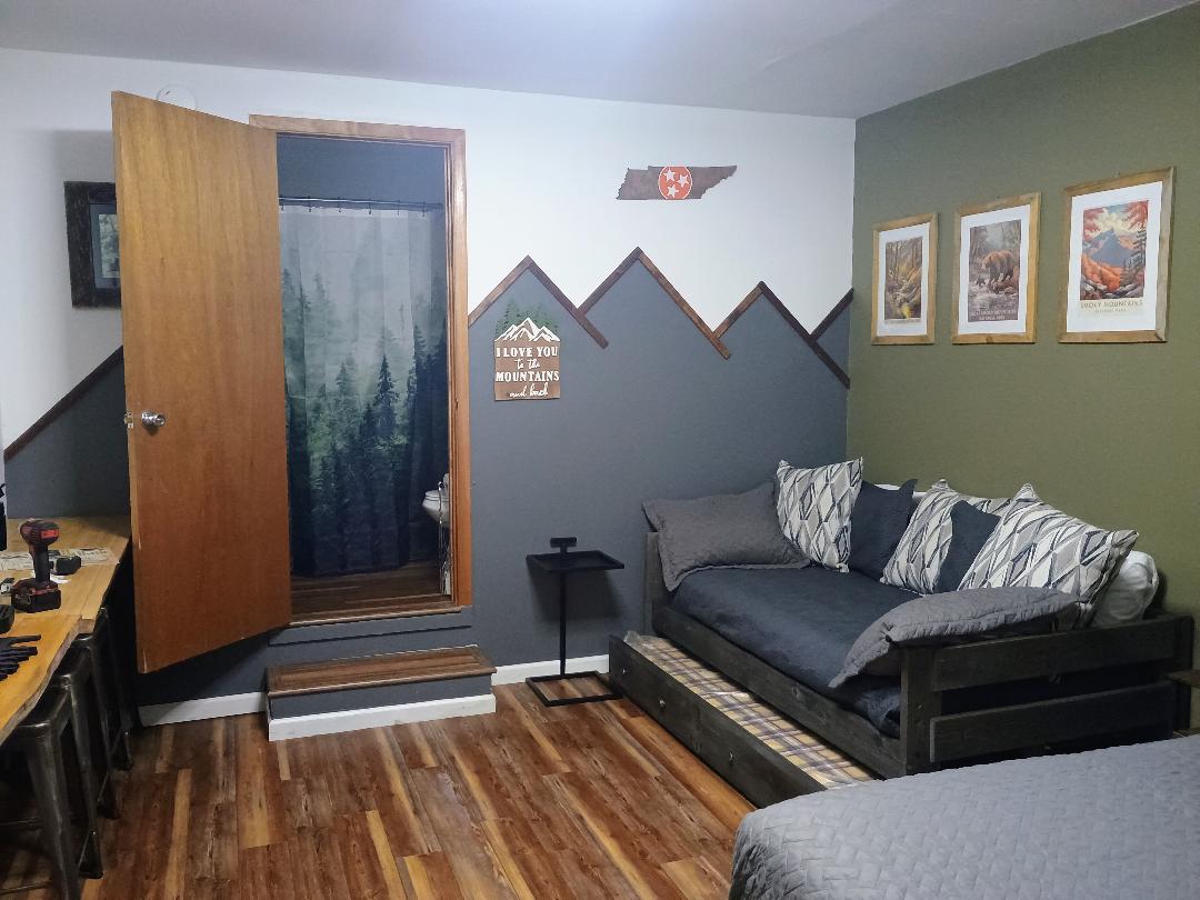 Bleiben Sie nicht vollgestopft in einem Hotel, wenn Sie in der Nähe der Stadt auf einem geräumigen 3 Hektar großen Land mit viel Platz zwischen Ihnen und dem nächsten Gästezimmer wohnen können, UND wir erhalten konsequent eine 100 Bewertung für extreme Sauberkeit! Charmantes Zimmer mit atemberaubendem Tal- und Bergblick im Herzen der Smokies in einer wunderschönen ländlichen Umgebung! Das Zimmer verfügt über ein eigenes Bad.