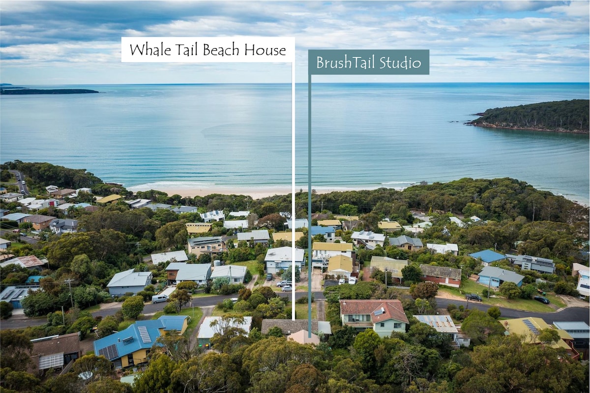 Still resembling the humble beach shack on first view , transformed now to a breathtaking stylish house with water views and sunsets that last forever . Imagine a relaxing bath with a glass of bubbles as the sun goes down or a stunning breakfast on the patio . A nectarine tree guards the hills hoist and lovely grassed area and and every window frames the water or bush . Amazing close humpback whale watching from Long Point or by boat from August into September for winter delight.