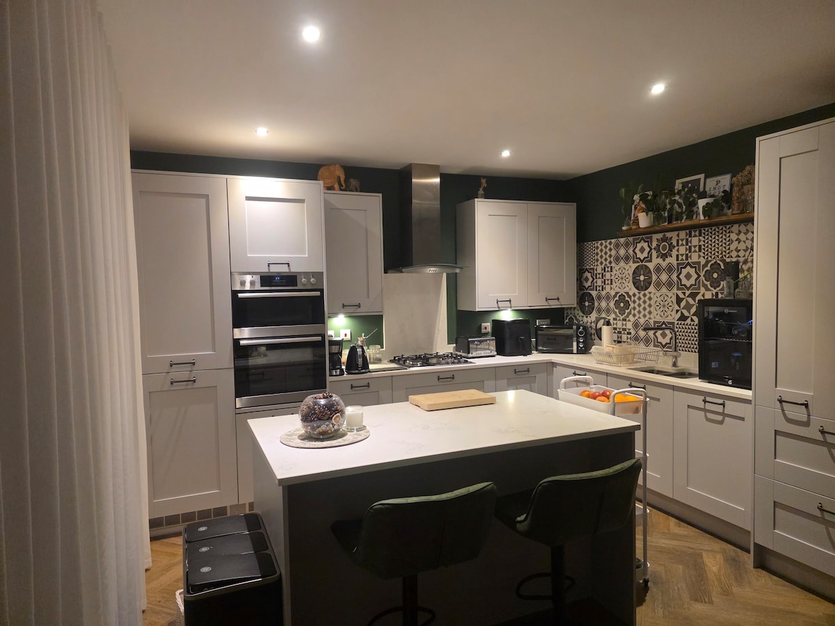 Willkommen in meinem gemütlichen, gut ausgestatteten Zuhause mit allem, was man für einen erholsamen Aufenthalt braucht. Genieße ein gemütliches Doppelschlafzimmer, eine moderne Küche mit Heißluftfritteuse, Espressomaschine und kompletter Kochausstattung sowie ein geräumiges Wohnzimmer mit Apple-TV, 120-Zoll-Projektor und Ledersofas. Das Haus verfügt über eine intelligente Siri-Beleuchtung, viele Pflanzen und einen großen Garten. Kostenlose EV-Ladung, eine private Einfahrt und tolle lokale Restaurants und Imbissbuden liegen ganz in der Nähe. Kein Live-in-Gastgeber, wenn diese Unterkunft gebucht ist.