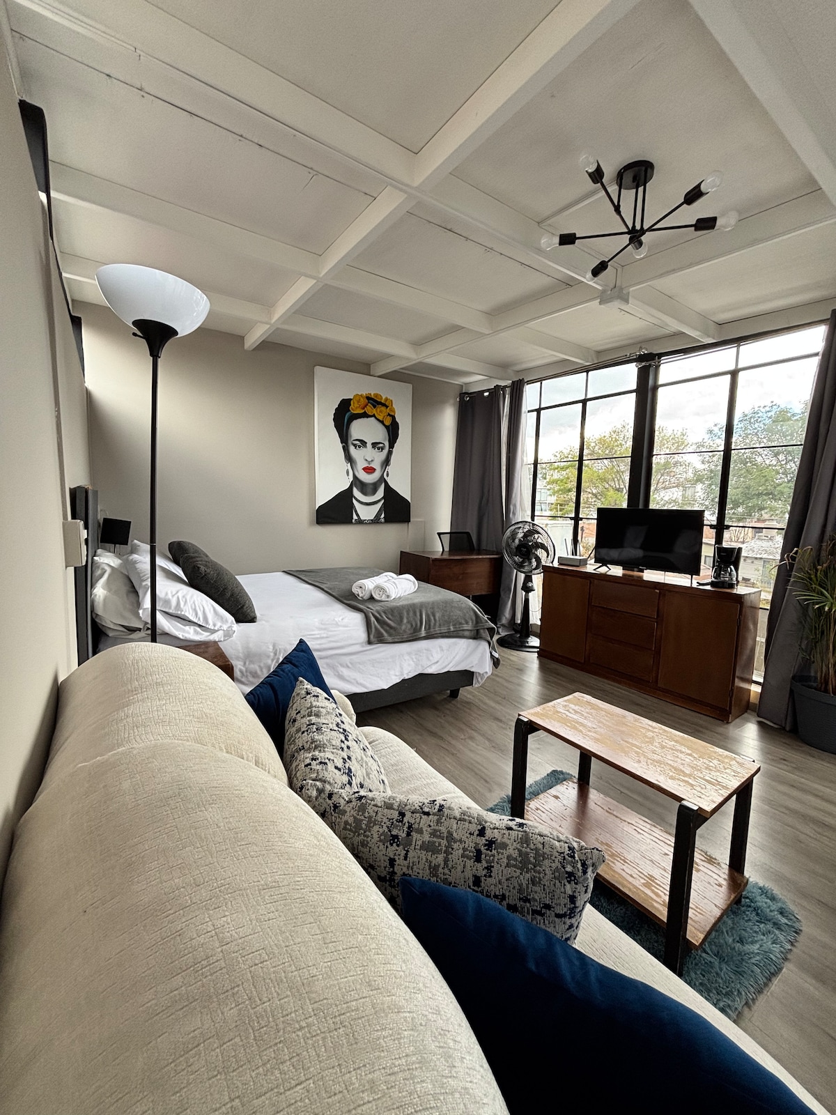 Boutique-Loft für 2–3 Gäste in Col. Universität, Toluca. Queensize-Bett und Schlafsofa, 300Mb WLAN und Smart-TV. Küche mit Induktion (Töpfe/Pfannen) ausgestattet und Grundausstattung enthalten: Kaffee, Tee, Zucker, Öl, Salz und Pfeffer. Warmwasser rund um die Uhr und, wenn es kalt ist, stellen wir eine Heizung zur Verfügung. Parkplatz für 1 Auto inbegriffen (passt ein großer Van, nicht überdacht). 1. Stock (nur Treppe). Ruhige Straße und Ruhezeiten. 24/7-Service.