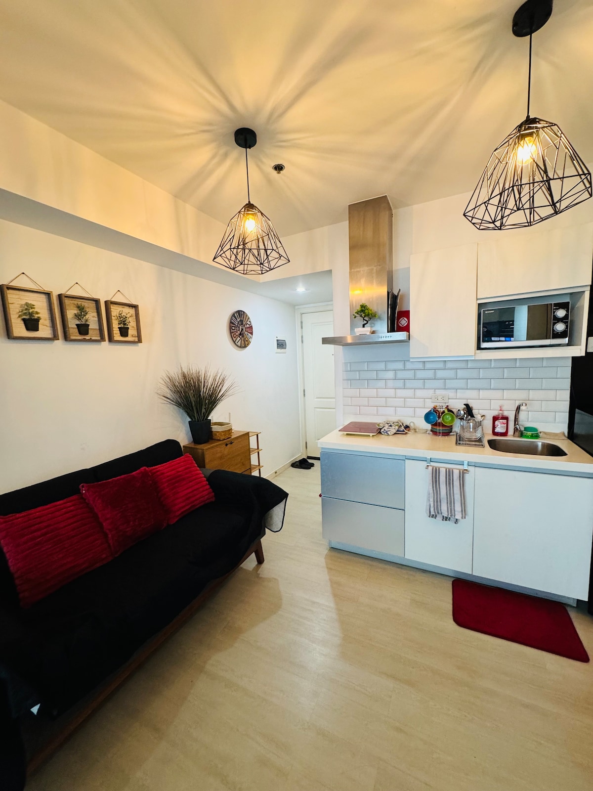 Eine voll möblierte, IG-würdige, gemütliche und stilvolle 34 qm große 2-Zimmer-Eckwohnung mit einem fantastischen Balkon, auf dem du dich entspannen, wichtige Ereignisse feiern oder einfach nur einen kurzen Urlaub mit deiner Familie oder Freunden verbringen und einzigartige, erstklassige Annehmlichkeiten wie den Wellenpool, den künstlichen weißen Strand, den Kinderspielplatz, den Basketballplatz, den Fitnessraum, den Volleyballplatz, die Strandbar, den Himmelsgarten und vieles mehr genießen kannst. Sie liegt nur fünf Gehminuten von einem Einkaufszentrum (SM Bicutan) und nur 10–15 Minuten vom Flughafen NAIA entfernt.