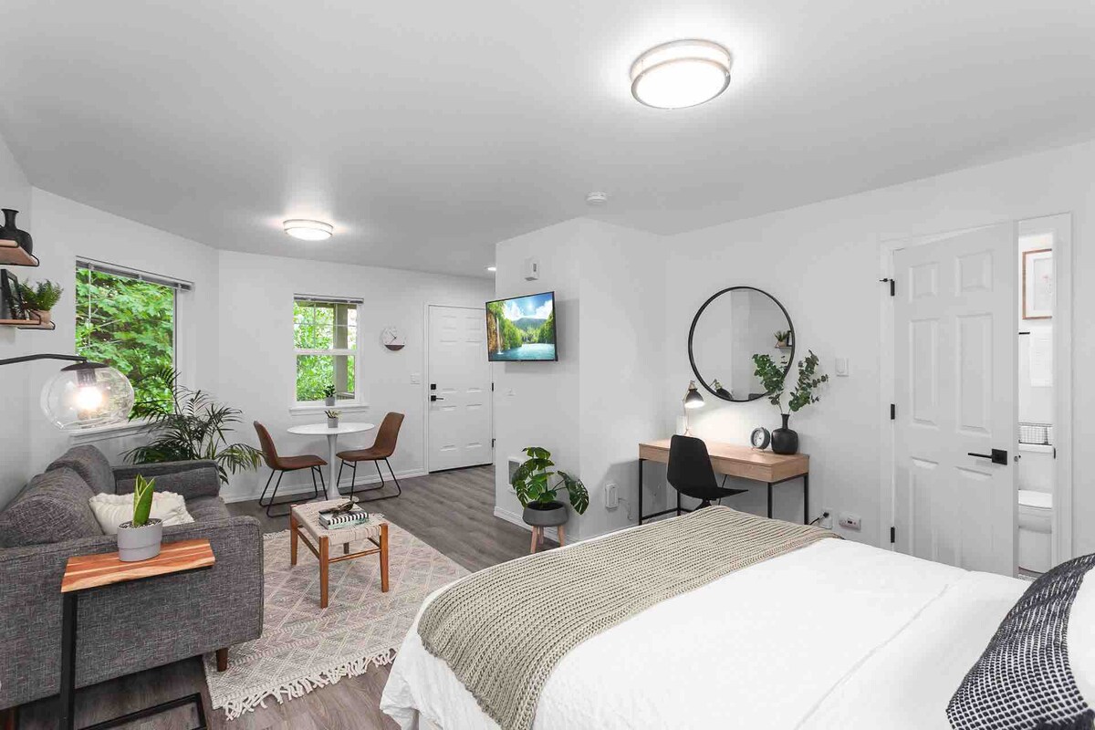 Eingebettet in Portlands fesselndem Wald bietet dieses frisch renovierte Studio den perfekten Rückzugsort. Nur eine Meile vom Multnomah Village, nur wenige Schritte vom Alice Trail und ein paar Blocks von der I-5 entfernt, verbindet unser Rückzugsort Abgeschiedenheit mit Komfort. Genießen Sie die Ruhe der Innenstadt. Mit durchdachten Möbeln für Komfort und viel Privatsphäre ist es ein idealer Ort, um sich nach der Erkundung der lebhaften Sehenswürdigkeiten von Portland zu entspannen. Erlebe den einzigartigen Charme unserer Stadt mit Leichtigkeit!