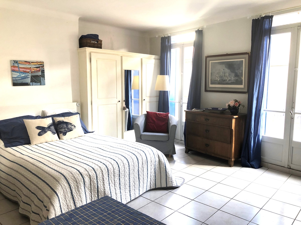 Sonniges und gemütliches Studio (32m ²) im Erdgeschoss unseres renovierten Fischerhauses. Direkt hinter dem Hafen und in der Nähe des Marktes Geschäfte, Restaurants und zwei Sandstrände. Charmante Fenstertüren öffnen sich zur Rue des Salins. Das Studio verfügt über einen eigenen Eingang, ein Doppelbett(140 x 200 cm), eine kleine Küche, eine Essecke und ein Badezimmer mit Dusche, Waschbecken und WC. Es gibt Fernseher und WLAN und einen guten Kleiderschrank. Ein Babybett kann auf Anfrage bereitgestellt werden.