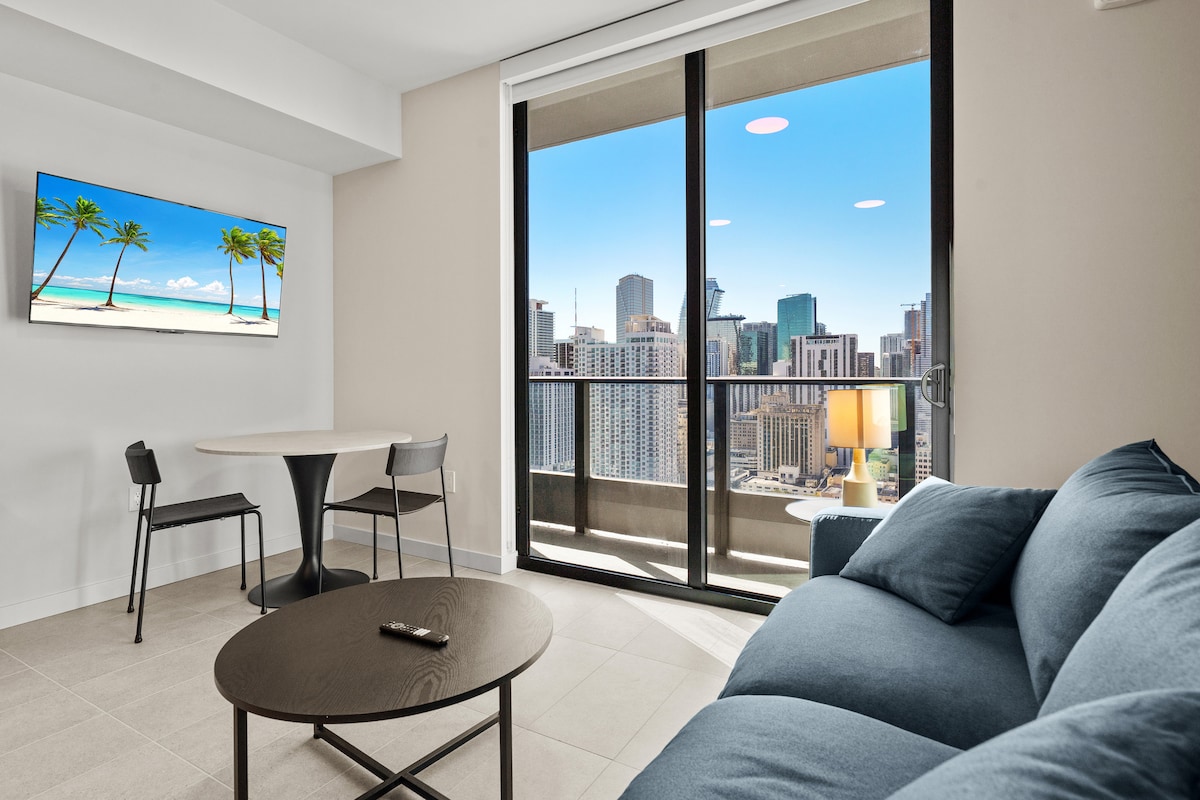 Tolle Wohnung mit einem Kingsize-Schlafzimmer und Queensize-Schlafsofa in Downtown Miami/Brickell. Diese Eigentumswohnung bietet einen atemberaubenden Blick auf die Stadt Miami mit einem hochmodernen Fitnessraum und einem tollen Pool. Die Eigentumswohnung befindet sich in der Innenstadt von Miami ganz in der Nähe des Hafens von Miami und Bayside. Das Fitnessstudio ist mit kostenlosen Hanteln, den besten Trainingsgeräten und Peloton-Fahrrädern ausgestattet. Der Pool bietet die beste Aussicht auf die Skyline von Miami und eine Poolbar! Der Whirlpool befindet sich neben dem Pool und ist bereit für dich zum Entspannen und Genießen des Sonnenuntergangs!
