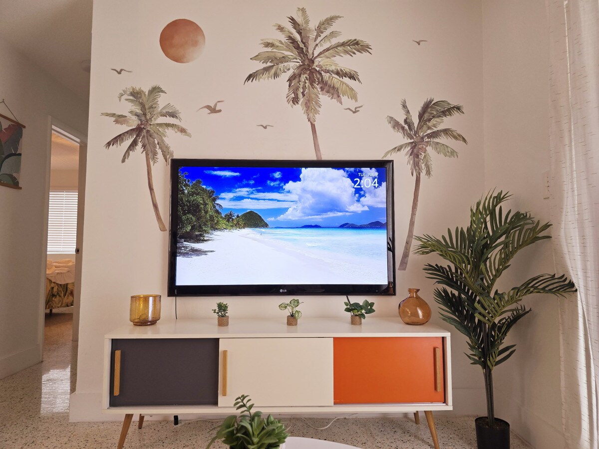 Das Gästehaus ist ein geräumiges 1 Schlafzimmer 1 Bad mit dem gleichen Komfort wie zuhause. Kingsize-Bett im Schlafzimmer und ein Queensize-Schlafsofa im Wohnzimmer. Hinterhof-Terrasse mit Tisch und Stühlen, Induktionsherd, Mikrowelle, Esstisch-Set, WLAN, Flachbild-Smart-TV. Die Wohnung befindet sich in günstiger Lage in Coral Gables, nur wenige Gehminuten von vielen Restaurants und Supermärkten entfernt, 12 Minuten von Miracle Mile und 10 Minuten von der U-Bahn entfernt.