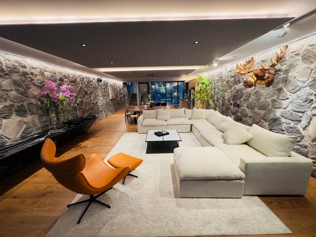 Casa Olivo Entfliehe in diesem modernen Haus in Avándaro in den Wald, ideal zum Ausruhen und Wiederverbinden. Mit Blick auf den Wald, natürlichem Licht, warmem Holz und großen Fenstern verbindet es modernen Komfort mit natürlicher Gelassenheit. Genieße Frühstück und Abende im Freien auf der Terrasse, in einer privaten und anspruchsvollen Umgebung, perfekt für Familien, Paare oder Freunde, die sich inmitten der Natur abschalten möchten.