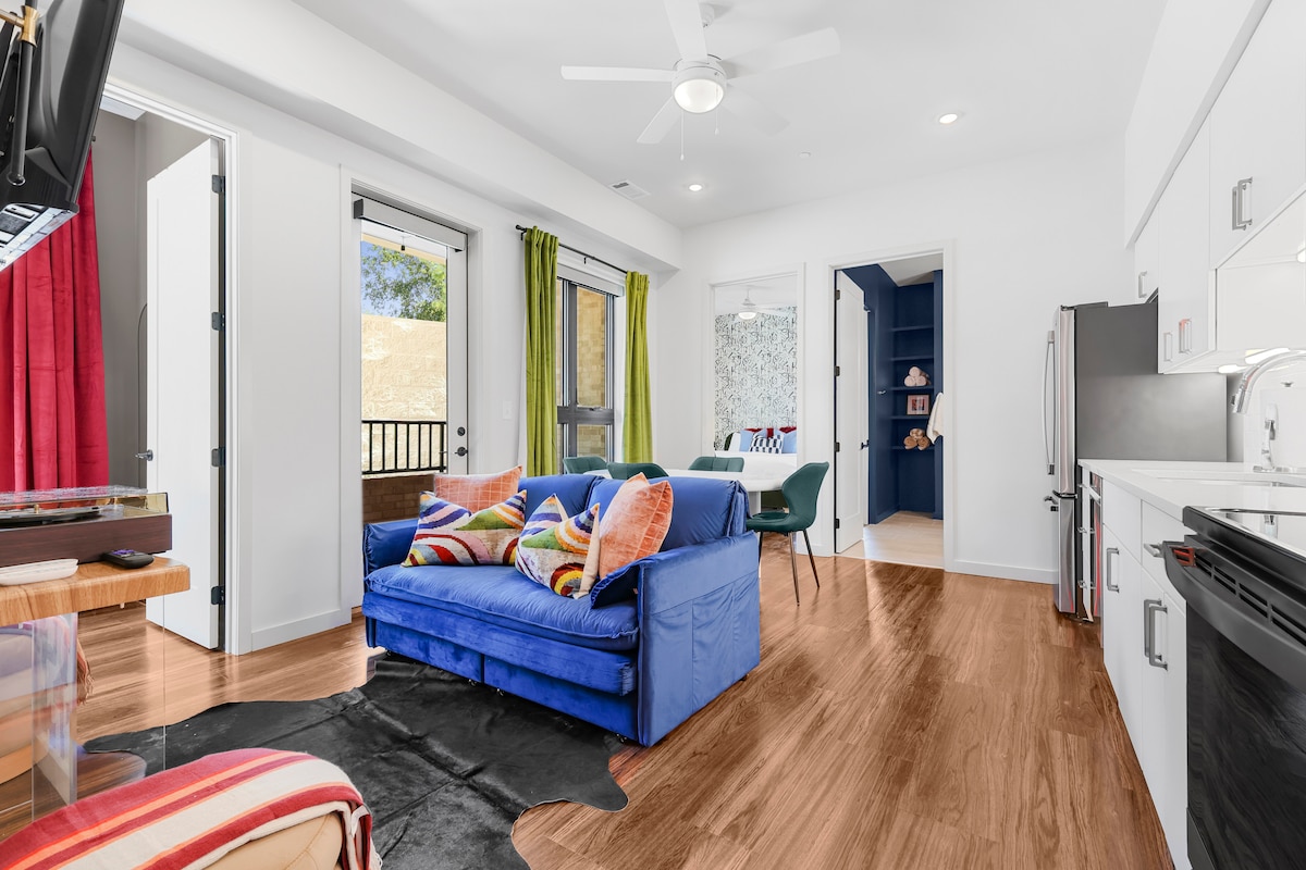 Designer-Luxus-Eigentumswohnung, die einen gehobenen Country-Core-Stil mit einer raffinierten Music-City-Ästhetik verbindet. Dieses Retreat mit 2 Schlafzimmern und 2 Bädern wurde sorgfältig in unserem charakteristischen Honky-Tonk-Stil gestaltet und ist ideal für Paare, Familien, Freunde oder Geschäftsreisen. Es bietet herausragende Innenräume, einen privaten Balkon und Zugang zu erstklassigen Annehmlichkeiten vor Ort, darunter einen Pool, ein Fitnessstudio, ein Businesscenter, kostenlose Parkplätze und Restaurants vor Ort.