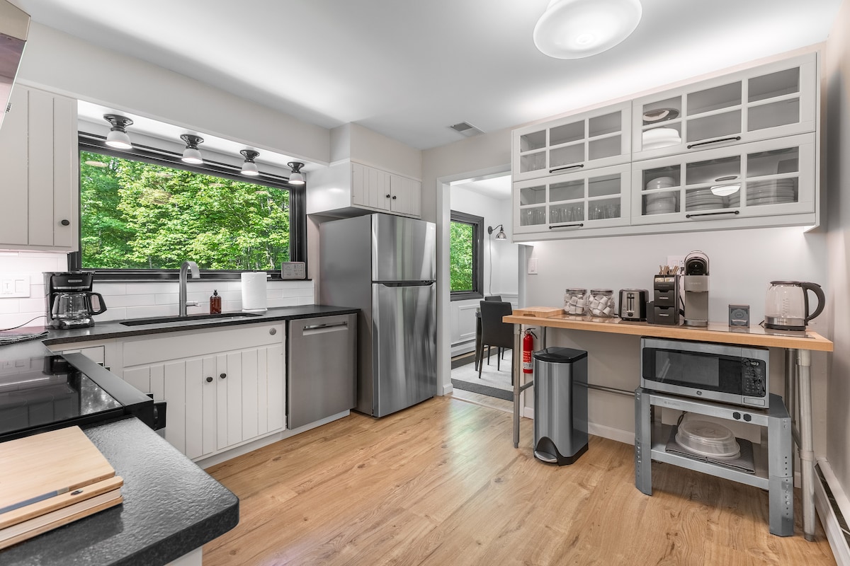 Eine Unterkunft, die ein Gefühl für einen Ort schafft, an dem sich Vintage-Stücke mit Modernem vermischen, um Räume zu schaffen, die sich intrinsisch einladend und mühelos gestaltet fühlen. Entspanne dich mit Freunden im Spa im Garten oder bereite in der raffinierten und eleganten Küche ein Abendessen zu, das du auf der schattigen Terrasse dieses luftigen Refugiums im Cape-Cod-Stil von 1948 servieren kannst. Das kletternde rosa Geißblatt und das gemütliche Interieur tragen zu seinem nostalgischen Charme bei. Bitte schau dir unser anderes Inserat an – Hooting Haus Cabin mit Whirlpool