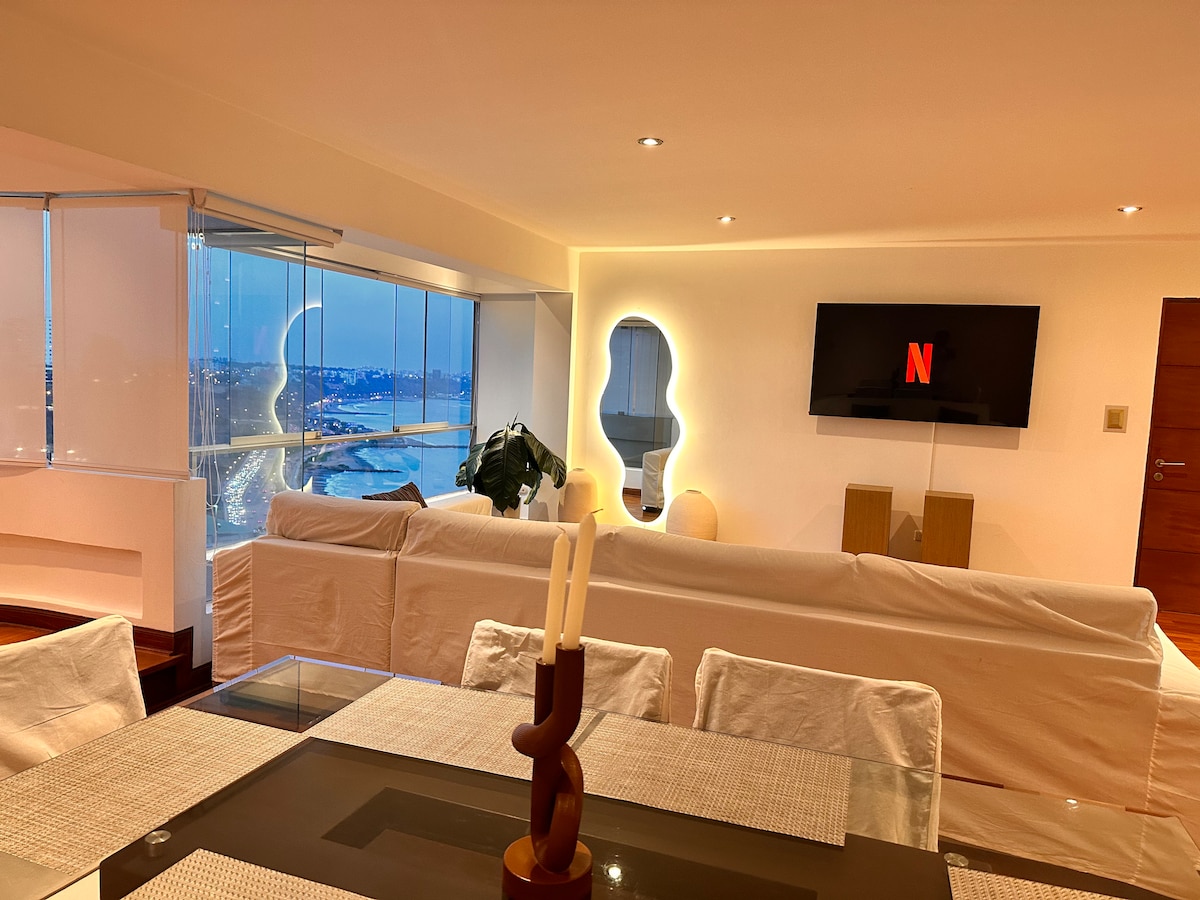 Schöne und geräumige Wohnung mit Blick auf den Pazifischen Ozean, verfügt über 4 Schlafzimmer, 3 Badezimmer und ist für 8 Personen ausgestattet. Sie liegt zwischen Larcomar und dem Marriot Hotel, was einen sofortigen Zugang zu einer Vielzahl von Geschäften, Restaurants, Kinos und Unterhaltungsmöglichkeiten bedeutet. Es ist ein perfekter Ort für diejenigen, die Komfort und Entspannung suchen. Die zentrale Lage ermöglicht einen einfachen Zugang zu anderen Sehenswürdigkeiten in Lima, wie Parks, Museen und der Malecón, ideal für Spaziergänge und Outdoor-Aktivitäten.