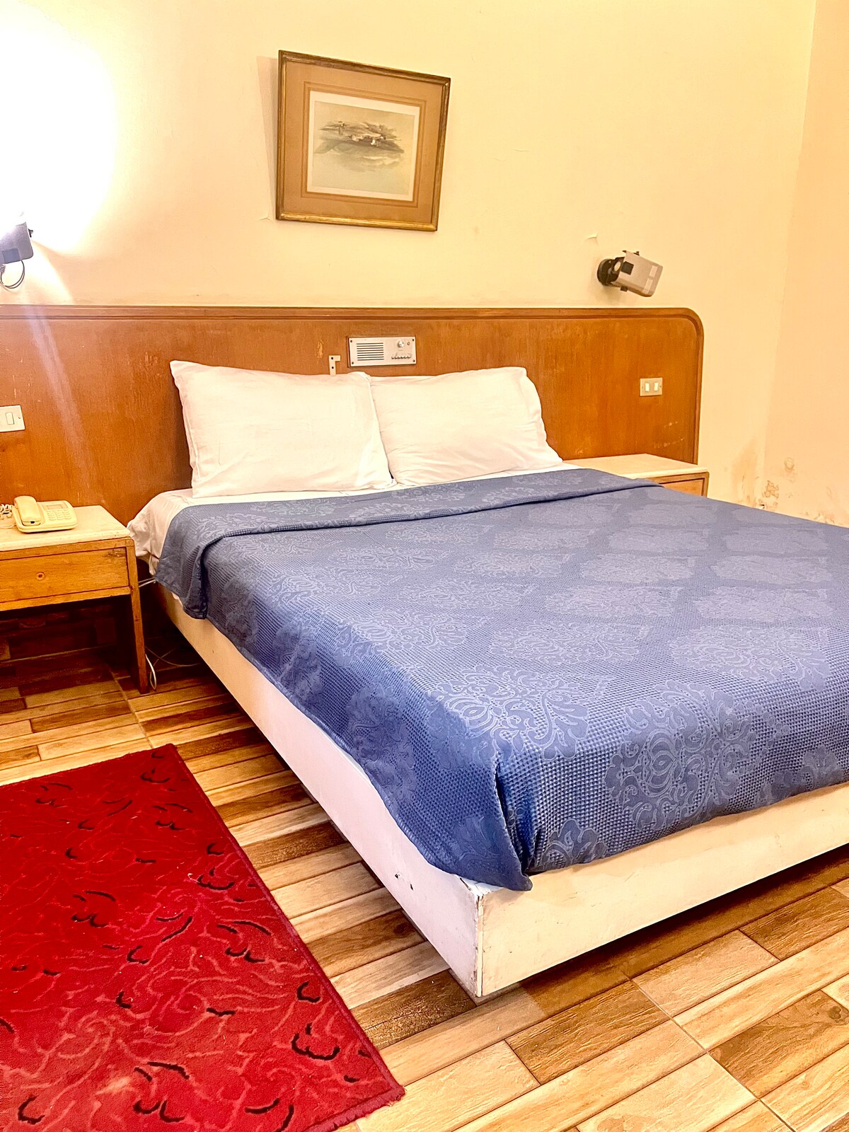 Cozy hotel room with King Size Bed and ensuite bathroom, located directly on the tram line in downtown Alexandria. Steps away from Alexandria University, the Library of Alexandria, and the Greek Roman Museum. Enjoy complimentary open buffet breakfast, free on-site parking, and professional cleaning during your stay. Bar and bakery available for an extra fee. Ideal for travelers seeking convenience, comfort, and proximity to Alexandria's key attractions. 24-hour reception and dedicated host.