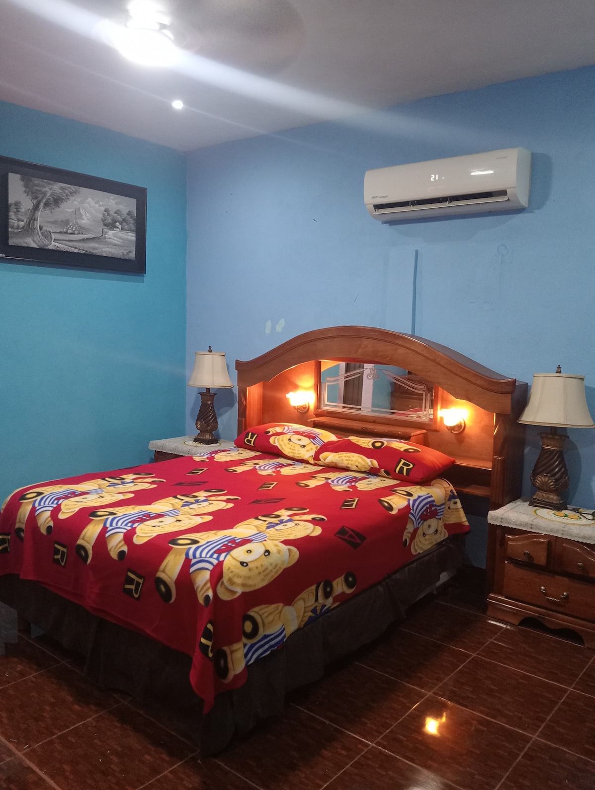 Esta ubicado en una colonia residencial, tranquila y segura. tiene una terraza grande con asador y una vista genial , cuenta con una recámara con una cama matrimonial y una individual, cocina , estufa, micro , TV, internet, aire acondicionado