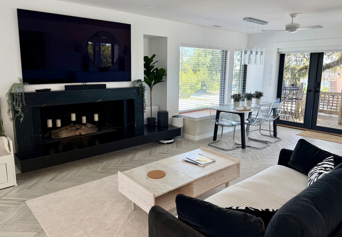 Herzlich willkommen! Wir sind die Eigentümer/Bauherren dieses Hauses, das 2016 gebaut wurde, und wohnen im Haupthaus daneben. Es hat einen eigenen Eingang und befindet sich über der Garage für eine tolle Aussicht auf den Bach, den Intracoastal Waterway dahinter und Sonnenaufgänge jeden Morgen. Die gemütliche Hütte liegt in der Nähe von Wrightsville Beach, der Innenstadt von Wilmington, Airlie Gardens, dem Nachtleben, dem Flughafen und Parks. Sie ist hell, geräumig und voller individueller Details und Annehmlichkeiten. Für Kajakfahrer sind ein Dock und der Zugang zum Wasser nur wenige Schritte entfernt.