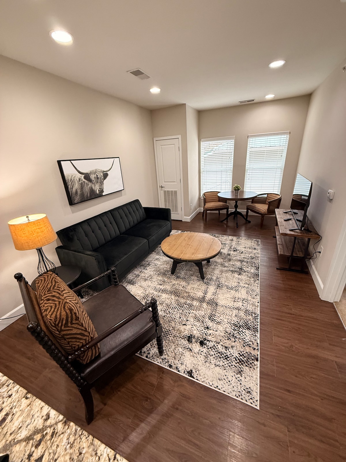 Wir sind bequem zu Fuß erreichbar von Downtown, Bryan Park und The B-Line Trail, 1 Meile zum IU Campus, 1,8 Meilen zur Assembly Hall und 3,5 Meilen zum IU Hospital. Unsere geliebte Luxus-Wohnung ist eine der schönsten Unterkünfte der Stadt. Es wurde einer maßgeschneiderten Renovierung mit weißen Eichen-Hartholzböden, Quarz-Arbeitsplatten und Premium-Geräten unterzogen, die mit einer Premium-Suite in einem Boutique-Hotel mit der zusätzlichen Privatsphäre, dem Charme und den Annehmlichkeiten einer Unterkunft zu einem tollen Preis konkurrieren.