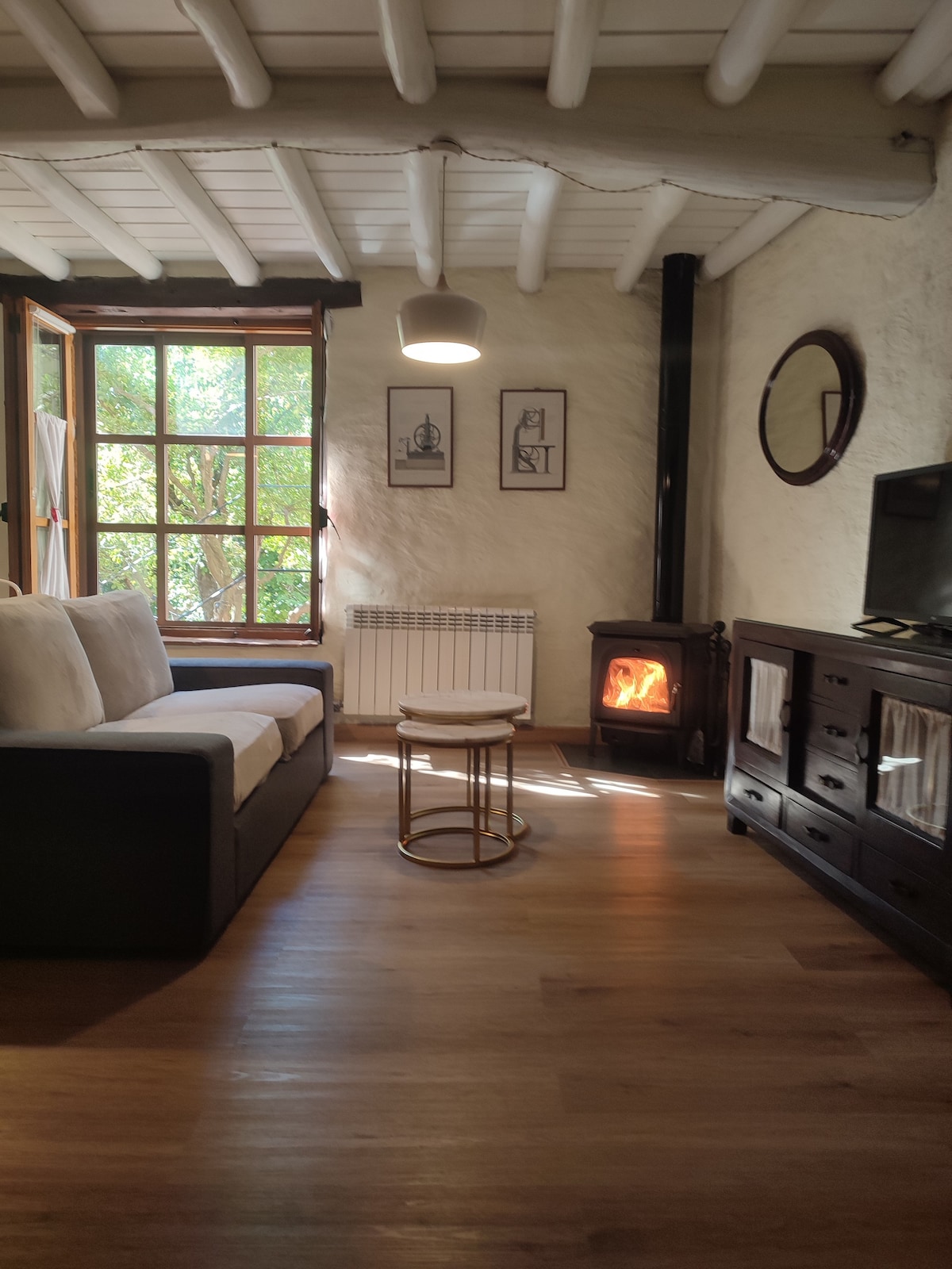 Freistehendes Haus, ideal für Paare und kleine Familien. Parkplatz und privater Garten, nicht geteilt, Veranda und Grill Es ist kein Zimmer, es ist ein schönes Ferienhaus. Offenes Wohnzimmer. Wohnbereich mit Blick auf den Holzkamin und Smart-TV, Esszimmer mit integrierter Küche, Bad, Doppelwaschbecken und schönes Schlafzimmer mit XXL-Bett. In der Nähe der Ausfahrt 375 der A66. Ideale Erholung zwischen Norden und Süden Fragen Sie nach, wenn Sie mit einem Haustier kommen. Der Pool ist 100 Meter entfernt und wird gemeinsam genutzt