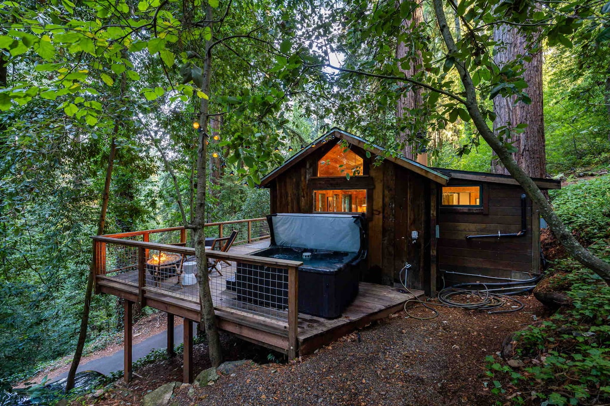 Redwood Treehouse Retreat – Whirlpool, Feuerstelle