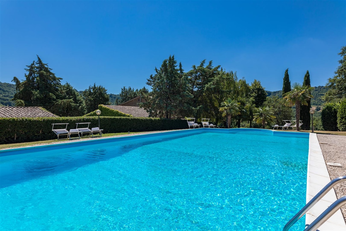 Villa Giorgia ist ein Bauernhaus auf den Hügeln von Todi, das eine atemberaubende Aussicht in einer Umgebung von absoluter Privatsphäre bietet, nur 10 Minuten vom Stadtzentrum entfernt. Die Villa bietet Platz für bis zu 7+1 Personen in 4 Schlafzimmern, davon 2 mit eigenem Bad. Die raffinierten, aber traditionellen Innenräume, das Wohnzimmer mit Kamin und die ausgestattete Küche blicken auf einen Garten mit Pool und Entspannungsbereichen. Ein perfekter Rückzugsort für diejenigen, die Entspannung und Privatsphäre mit allen notwendigen Annehmlichkeiten suchen.