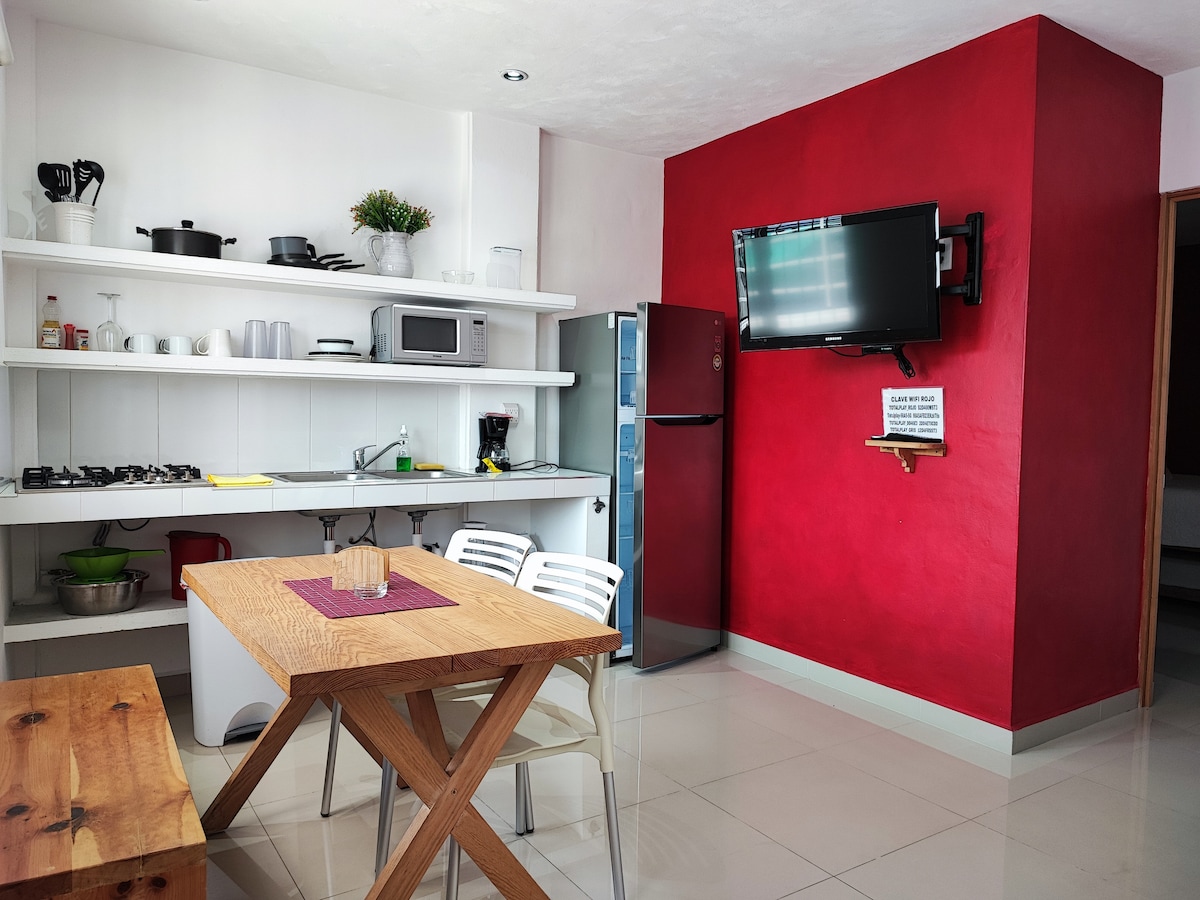 Separate Suite mit Badezimmer, Esszimmer und ausgestatteter Küchenzeile. Wir befinden uns im Bereich der Veranstaltungsgärten von Jiutepec, Morelos. Wir haben diese Unterkunft für Gäste entworfen, die an Hochzeiten teilnehmen. Internet bis zu 500 MB für Home Office. Oxxo und Supermärkte sind nur 5 Fahrminuten entfernt. Liefer-Apps kommen an. Parkplätze vor Ort und Überwachung rund um die Uhr. Frage nach unserer Aktion für Freitag und Samstag mit spätem Check-out am Sonntag (vorbehaltlich der Vorabgenehmigung)