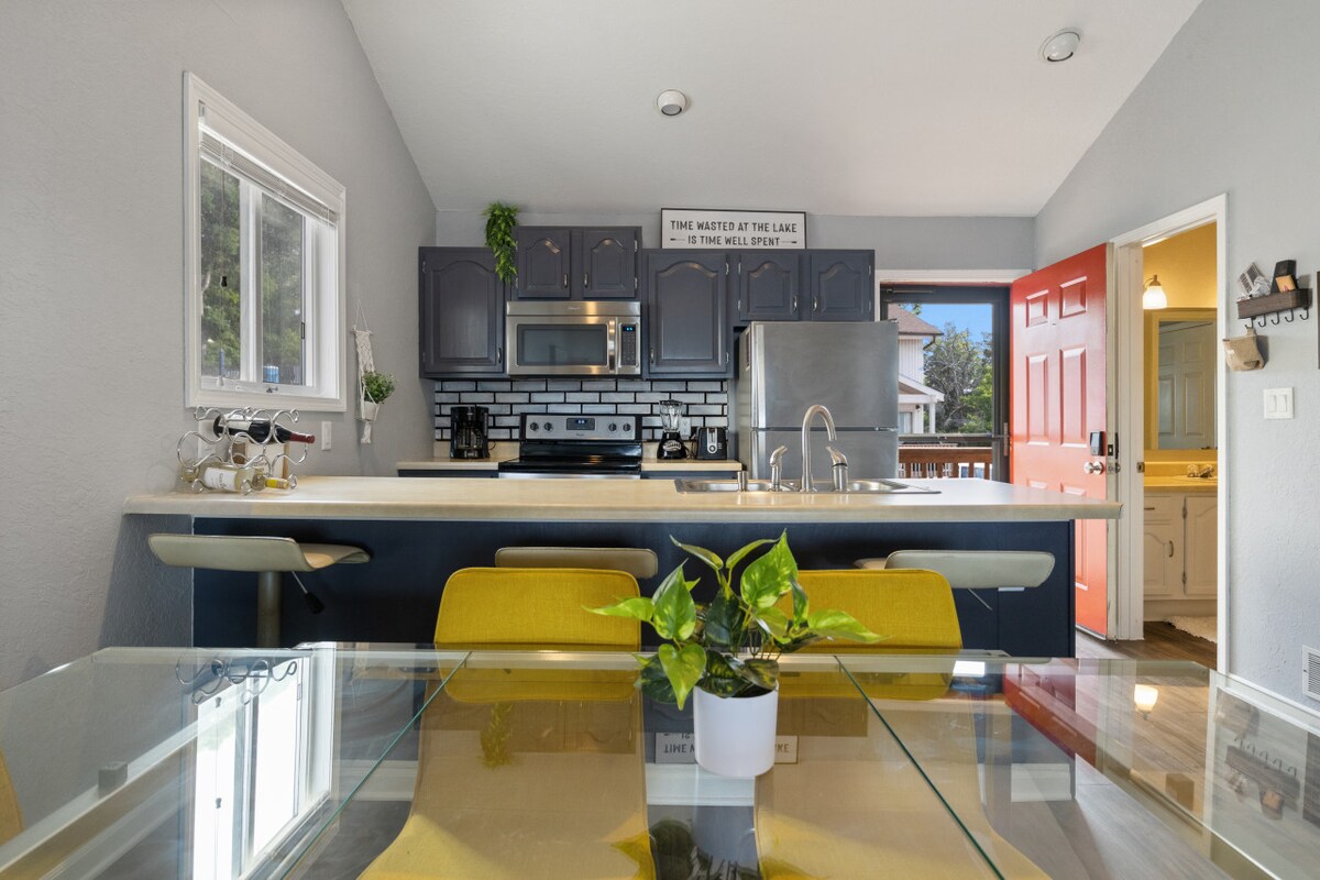 Das Leben am See vom Feinsten! Beginne deinen Morgen mit Kaffee auf der Terrasse am Wasser, während du Wildtiere beobachtest und die ruhige Aussicht genießt. Diese renovierte Wohnung auf Parkplatzebene kombiniert Komfort und Stil mit einem weichen Queensize-Bett und einer geräumigen ebenerdigen Dusche. Die moderne Küche verfügt über Edelstahlgeräte, Backofen/Herd, Mikrowelle und persönlichen Elektrogrill. Eine Keurig mit wiederverwendbarer Kapsel für deine eigene Mischung oder die kostenlosen Kaffeekapseln verleihen einem erholsamen Kurzurlaub die perfekte Note.