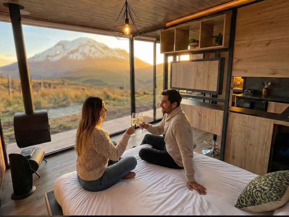 Entre paisajes que tocan el cielo y la grandeza del Chimborazo, Stelar Suites a 4,000 msnm ofrece una experiencia única: una tiny house moderna con chimenea donde el confort se encuentra con la aventura y la calma con el lujo simple. Ideal para parejas, familia y exploradores que buscan desconectarse del ruido, contemplar las estrellas y despertar frente a un volcán majestuoso. Disfruta de las diferentes actividades que ofrece el Chimborazo, a tan solo 10 min del ingreso a la reserva.