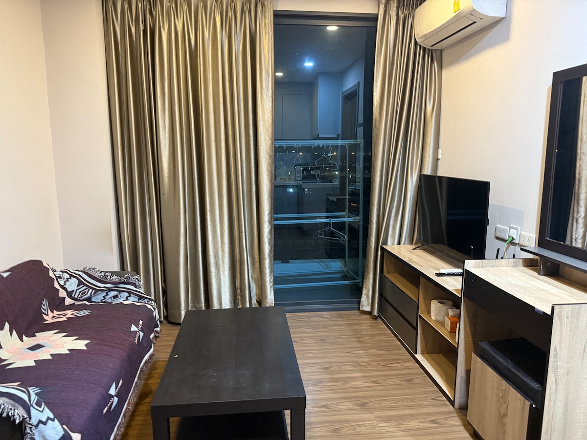 🌴Entspanntes Wohnen und gut für die Arbeit an diesem friedlichen Ort 🌟Das Zimmer ist voll ausgestattet, Smart-TV, separates Schlafzimmer, Wohnzimmer, voll ausgestattete Küche, Waschmaschine und Balkon in 25 qm. 💢WLAN kostenlos in allen Bereichen. 💢Gutes Arbeiten von zu Hause aus, Schreibtisch im Zimmer und gemeinsamer Arbeitsbereich in der Wohnung. 💢Gute Stimmung, entspanne dich im farbenfrohen Garten, am Pool, im Fitnessraum und in der Sauna. 💢 7/11 ist in der Wohnung. Es gibt überall eine Vielzahl von lokalen Speisen. 💢Die Metro City kann mit dem nahegelegenen Skytrain erreicht werden. Der Flughafen Dmk ist 3 km von hier entfernt. 👍Alles in diesem Preis inbegriffen.