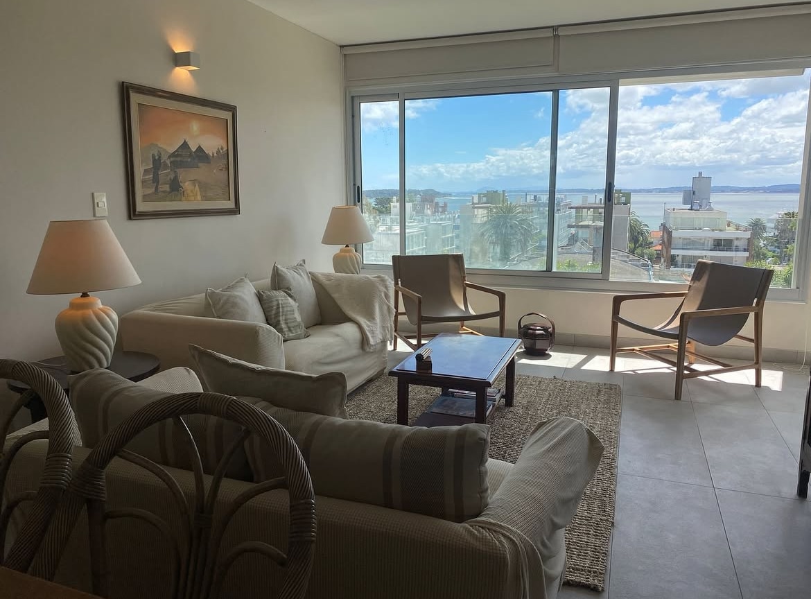 Gemütliche Eigentumswohnung mit atemberaubender Aussicht auf den Yachthafen Punta del Este, die Insel Gorriti und Playa La Mansa. Diese elegante Wohnung liegt nur einen Block vom Meer entfernt und bietet einen hervorragenden Aufenthalt für den Reisenden, der die traditionelle Architektur der Gebäude schätzt, die in der '60 auf der Halbinsel La entstanden sind. Von März bis November bieten wir große Monatsrabatte an. Bitte erkundige dich nach ihnen.