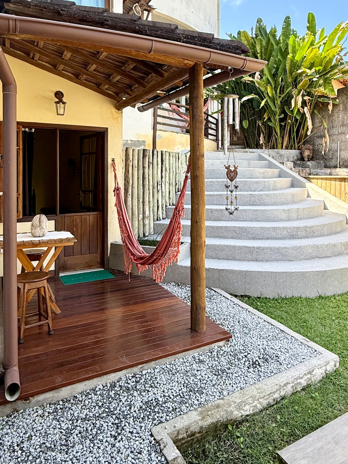 Das Residencial Recanto Tropical befindet sich in Arraial d'Ajuda und ist eine Wohnanlage mit 3 renovierten und hochwertigen Häusern, umgeben von einheimischer Natur. Es liegt 50 Meter vom Strand von Araçaípe entfernt, am wunderschönen Meer von Arraial d'Ajuda, Gemeinde Porto Seguro, Bahia. Hier finden Sie eine familiäre, ruhige und gemütliche Atmosphäre, sowohl für die Erholung als auch für das Homeoffice. Das Haus der Orchideen ist ebenerdig und bietet Platz für bis zu 3 Personen in 1 Kingsize-Bett + 1 Einzelbett oder 3 Einzelbetten