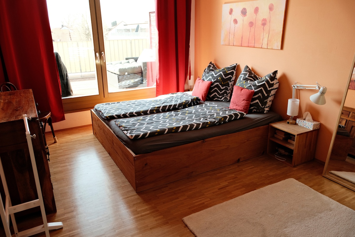 die Wohnung wird regelmäßig renoviert. Möbel aus Eiche und Naturstoffen für das gute Gewissen und der Freude an Behaglichkeit geben euch den Rahmen für einen erholsamen Aufenhalt. Ihr habt einen eigenen Eingang und könnt wenn das Wetter es erlaubt, auf einer eigenen Terasse frühstücken oder auch grillen. Selbstverständlich haben wir eine voll ausgestattete Küche mit Mikrowelle und Nespresso Kaffemaschine. Fernseher ist obligat und für die Analogen von euch steht eine Bibliothek zu Verfügung.