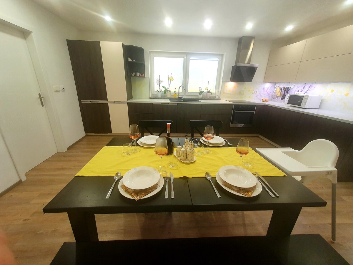 Moderne, schön renovierte, voll möblierte, familienfreundliche Wohnung im ♥ Nationalpark Triglav, in einer ländlichen, ruhigen Gegend, umgeben von Feldern und Wäldern. Genieße die Privatsphäre und Ruhe abseits des Stadtlärms. ★ KOSTENLOSE Parkplätze stehen vor dem Haus zur Verfügung. ★ Perfekte Wahl für Familien oder Paare ★ Kinder können sicher draußen spielen → Kein Verkehr ★ Erkunde, lerne, entspanne und erlebe die unberührte Natur und schaffe bleibende Erinnerungen → Besuche die Vintgar-Schlucht (5 Minuten mit dem Auto) oder Bled (10 Minuten mit dem Auto)