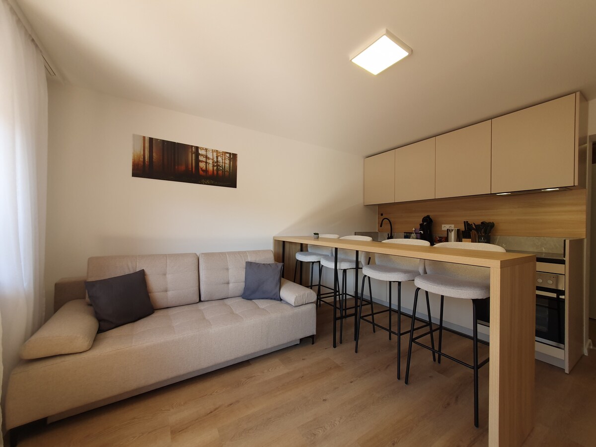 Mit Liebe eingerichtetes 2 Zimmer-Apartment "Herzgrün" (36 qm) für 2 Personen (+ Baby). Traumblick vom Balkon und Sauna im Haus (gemeinschaftlich genutzt gegen Gebühr). Lass das Auto in der Tiefgarage stehen und starte deine Wanderung direkt vom Haus. Viele Sehenswürdigkeiten in der Umgebung. Zwei Skiliften sowie Langlauf-Loipen fußläufig (bei guter Schneelage)