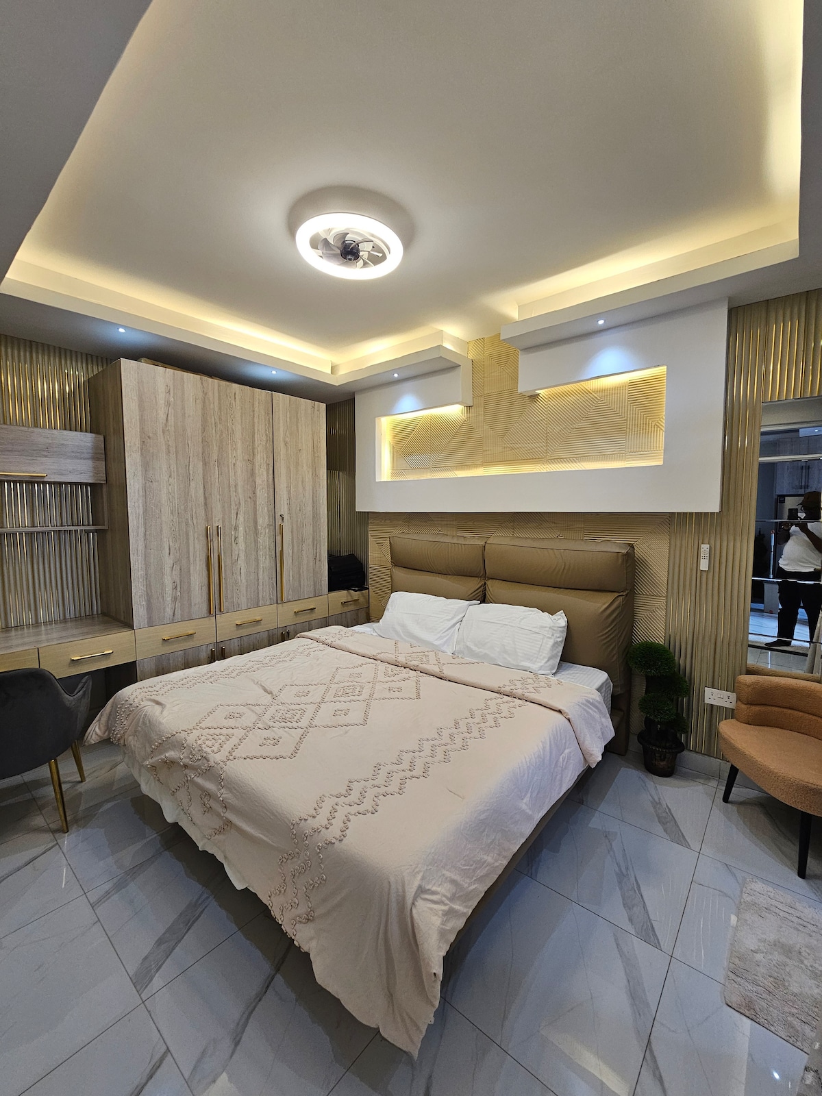 Dieses ästhetische Apartment mit einem Schlafzimmer befindet sich in Naalya Estate in der Nähe des Qualitäts-Supermarkts. Es ist nur wenige Fahrminuten von der nördlichen Umgehungsverbindung entfernt, die dich über die Express Highway zum Flughafen und in der Nähe der Acacia Mall, schöne Restaurants und Bars in der Nähe, führt. Es gibt auch eine Reihe von alternativen Routen in die Stadt. Die Ausstattung ist: - Alle Küchengeräte, z. B. Reiskocher, Kaffeemaschine, Mixer - Schnelles WLAN - 55 Zoll Samsung Smart-TV - Samsung-Soundbar - Waschmaschine