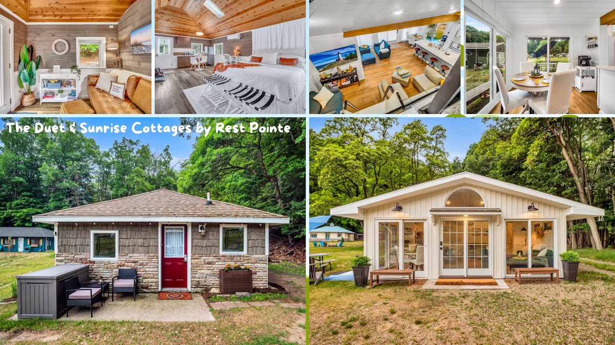 Entfliehe in einen friedlichen Rückzugsort für Paare am Lake Michigan in Montague, Michigan. Das Duet Cottage ist eine gemütliche Unterkunft mit einem Schlafzimmer auf einem malerischen, 8 Morgen großen Grundstück am See mit 372 Fuß Ufer am Lake Michigan. Dieses charmante Cottage ist perfekt für romantische Kurzurlaube, Jubiläen oder ruhige Strandurlaube und bietet einen privaten Strandzugang, atemberaubende Sonnenuntergänge über den Klippen und eine entspannende natürliche Umgebung, nur wenige Minuten von Montague und Whitehall entfernt.