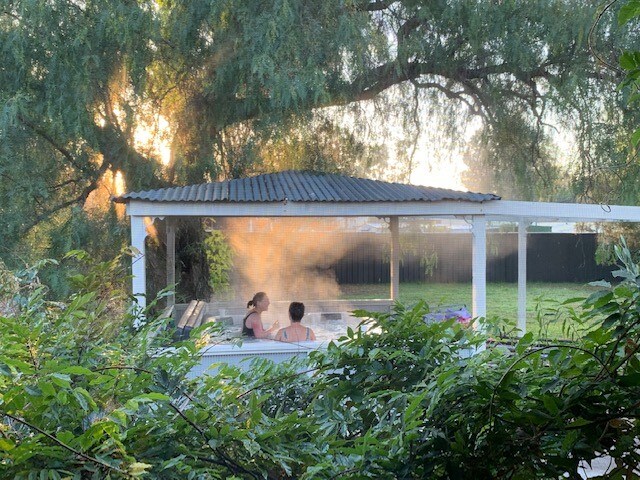 Entfliehe in einen luxuriösen Glamping-Rückzugsort auf der Broke Estate, wo Natur auf Komfort trifft. Eingebettet in eine private Umgebung genießt du ein wunderschön gestaltetes Glockenzelt mit hochwertiger Bettwäsche, einem gemütlichen Sitzbereich und einem Plattenspieler. Dein privater Ausstattungs-Pod umfasst ein komplettes Badezimmer, eine Küche und ein Tagesbett. Entspanne dich auf der großzügigen Terrasse, an der Feuerstelle (saisonal) oder in der klimatisierten Unterkunft. Umgeben von Natur und doch in der Nähe der Weingüter des Hunter Valley ist dies der perfekte ruhige Rückzugsort.