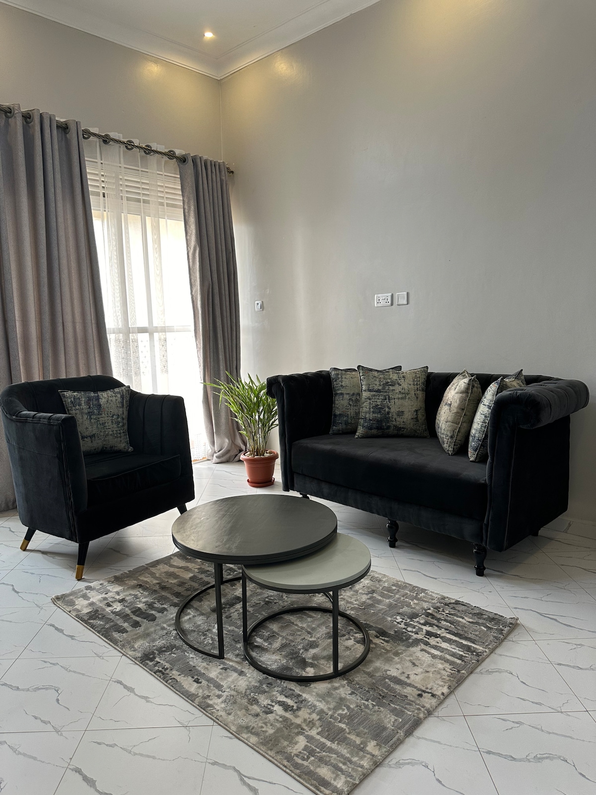Ungefähr 4 Minuten vom Kampala-Entebbe Express Highway entfernt, lebt dein neues Zuhause in völliger Abgeschiedenheit. Während diese moderne Wohnung mit einem Schlafzimmer die perfekte private und sichere Unterkunft für dich ist, entweder für Geschäfts- oder Urlaubsaufenthalte, macht es dir leicht, sich fortzubewegen. Sie sind nur: 15 Minuten zum internationalen Flughafen Entebbe 5 Minuten zum PistaNero Tennisplatz 10 Minuten zum Forest Park, Lweeza 15 Minuten zur Mirembe Mall 25 Minuten zum Stadtzentrum 20 Minuten zum KK Beach und Ragga Dee Beach