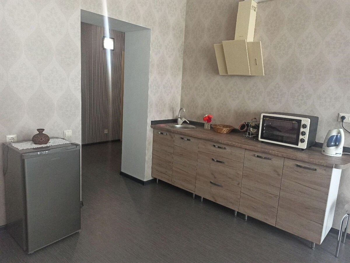 Das Apartment "Elise" befindet sich im landschaftlich gestalteten Elite-Dorf Sauvignon, 10-15 Gehminuten vom öffentlichen Strand und dem Privatstrand "Voskhod" entfernt. Die Wohnungen befinden sich auf dem Territorium des Meisterhofs in einem separaten Gebäude, im ersten Stock, über der Garage. Über eine Metalltreppe gelangst du zum Eingang zum zweiten Stock. Es gibt klimatisierte Parkplätze. Das Apartment verfügt über ein Wohnzimmer kombiniert mit einer Küche, sowie einen privaten Toilettenraum mit einer Duschkabine und einem Waschbecken.