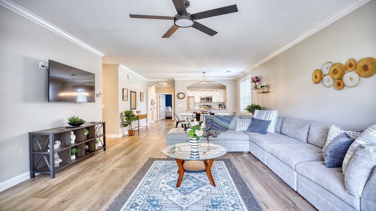 North Myrtle Beach Home Fußweg zum Strand Parkplatz Lehn dich zurück und entspanne dich. Erlebe die Ruhe von Cherry Grove Beach in diesem charmanten Familienhaus, nur wenige Minuten von Cherry Grove Beach entfernt. Mit einem offenen Raumkonzept und einem privaten Garten ist dies ein großartiger Ort für Familien. Gehe zum Strand und erkunde die Umgebung oder lass dein Kajak in den Wasserkanal auf der anderen Straßenseite fallen und paddle los! 2 Gehminuten zum Strandzugang 3 Minuten Fahrt zum Cherry Grove Beach 19 Minuten Fahrt zum Barefoot Landing