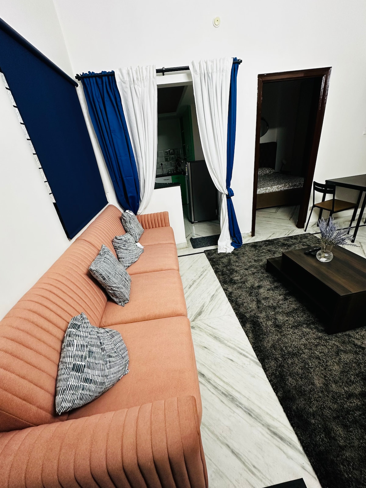 Übernachte im Light Haus, einem modernen 2BHK im Herzen der Stadt. Perfekt für Familien, Geschäftsreisende oder diejenigen, die einen Tapetenwechsel suchen, während sie von zu Hause aus arbeiten. Es bietet kostenloses High-Speed-WLAN und ein Netflix-Abonnement. Highlights der Lage: • U-Bahnhof New Market – 10 Gehminuten • Nächste Galleria Mall – 7 Minuten zu Fuß • Flughafen – 50-60 Minuten mit dem Auto • Bahnhof – 15 Minuten mit dem Auto