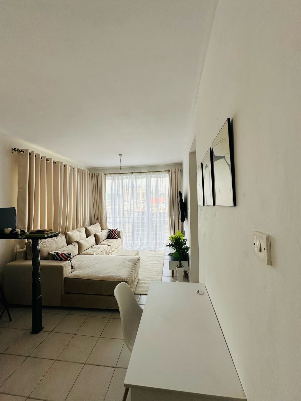 Diese gemütliche Wohnung mit einem Schlafzimmer in Kileleshwa, Nairobi, bietet modernen Komfort mit einem offenen Wohn-, Ess- und Küchenbereich. Große Fenster durchfluten den Raum mit Tageslicht. Das Schlafzimmer verfügt über ein Queensize-Bett und Einbauschränke. Ein eigenes Bad mit eleganten Armaturen ergänzt das Layout. In der Nähe von Einkaufszentren, Restaurants und Verkehrsmitteln kombiniert diese Wohnung Komfort und Privatsphäre, ideal für städtische Profis