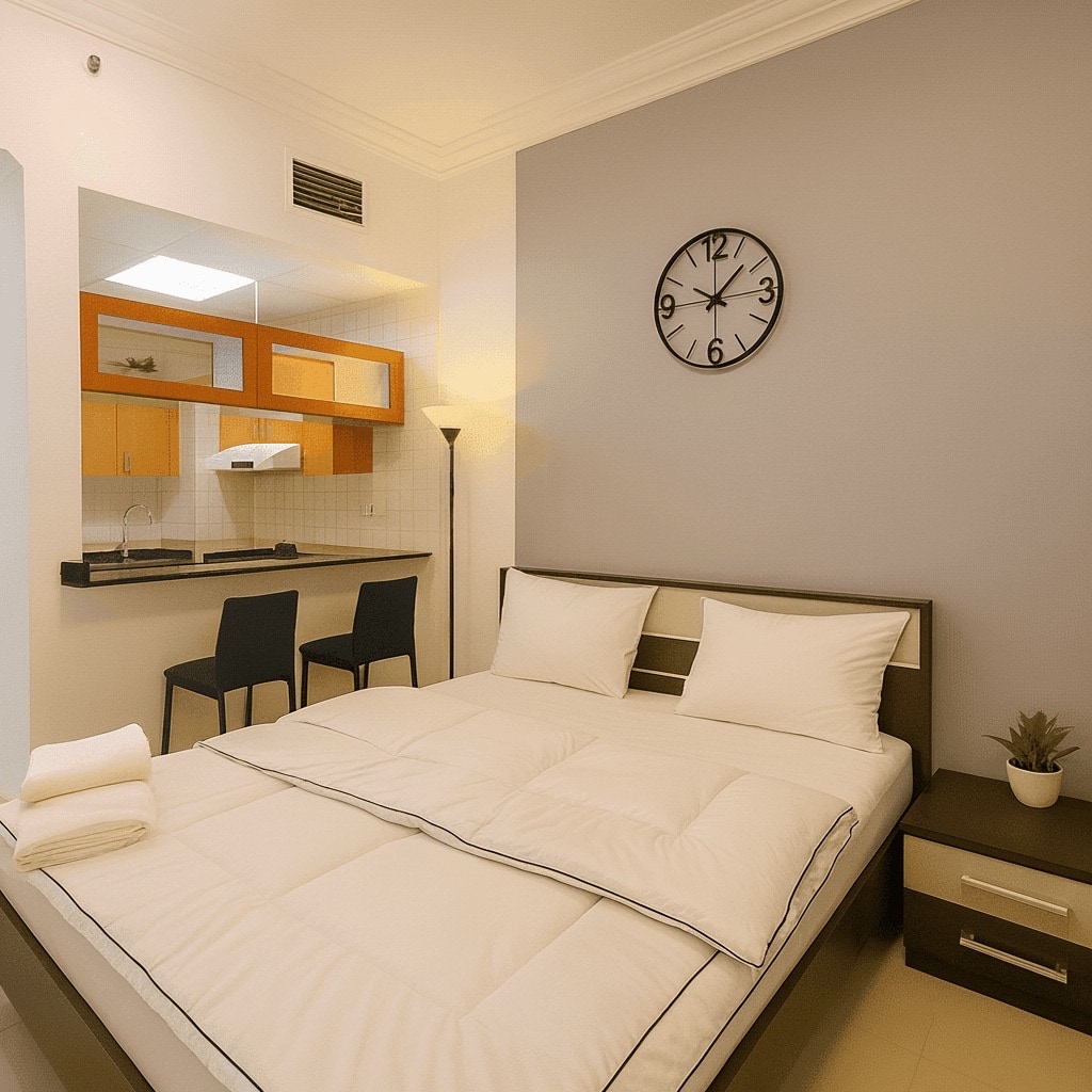 Unser durchdacht gestaltetes Studio-Apartment befindet sich im Herzen von Dubais Palm Jumeirah, direkt gegenüber der berühmten Nakheel Mall. Das Studio-Apartment verfügt über eine voll ausgestattete Küche und befindet sich in einem voll ausgestatteten 5-Sterne-Lifestyle-Hotel, dem Andaz Dubai The Palm by Hyatt. Die Wohnung bietet dir Zugang zu einer Reihe von Annehmlichkeiten, wie einem Poolbereich nur für Erwachsene auf der Dachterrasse des Gebäudes, sowie Zugang zum Strand und zum Familienpool der Gemeinde mit Blick auf den Burj Al Arab.